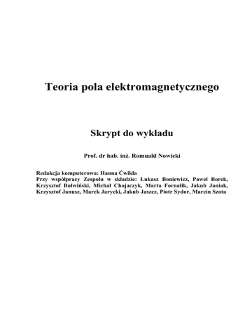 Teoria pola elektromagnetycznego Skrypt do wykładu Prof. dr hab. inż. Romuald Nowicki