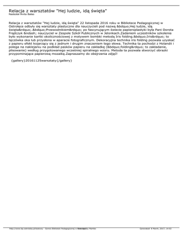 Relacja z warsztatów "Hej ludzie, idą święta" 22 listopada 2016 roku w Bibliotece Pedagogicznej w