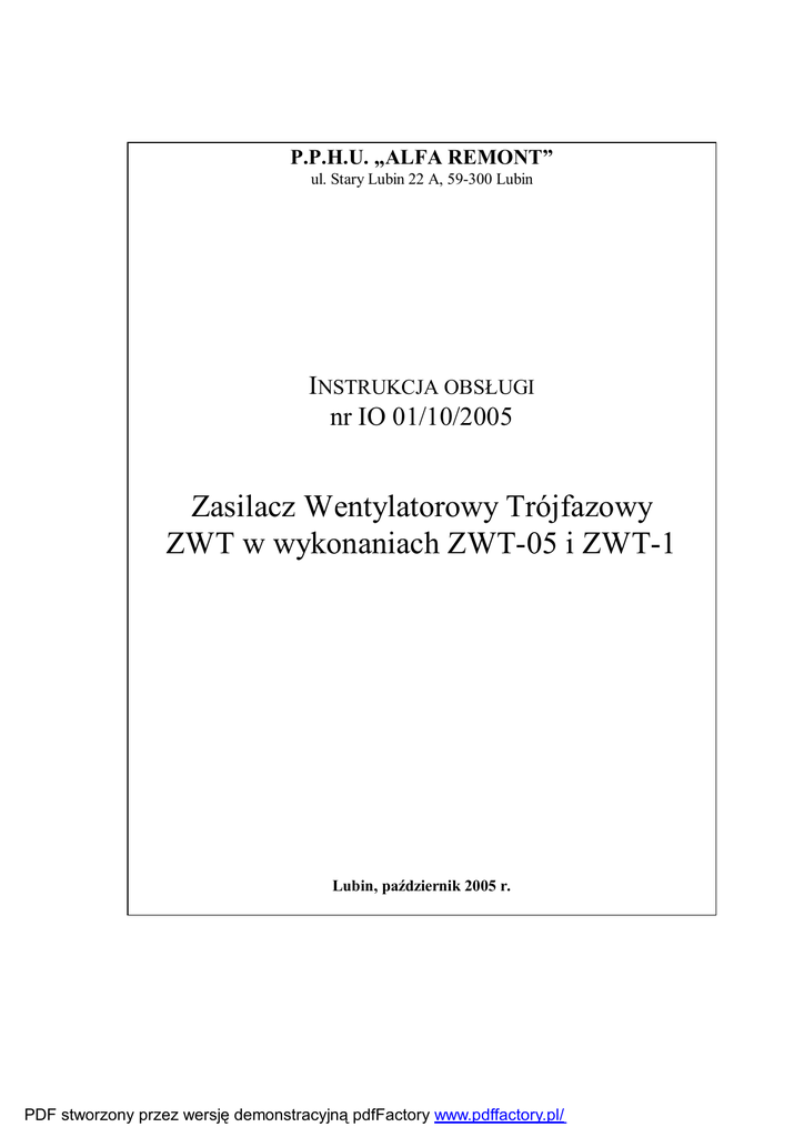 Instrukcja obsługi ZWT-05 i ZWT-1