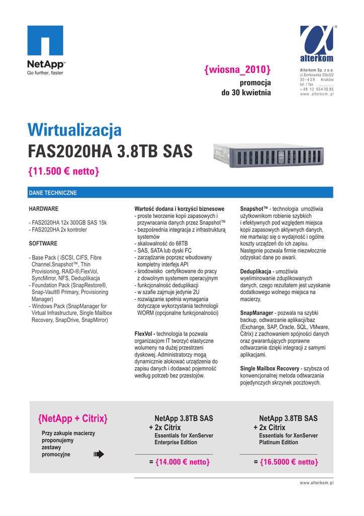 Wirtualizacja FAS2020HA 3.8TB SAS