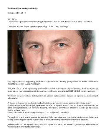 Harwestery to mniejsze koszty Dodano: 08.01.2010 8.01.2010 Leśniczowie i podleśniczowie kosztują LP rocznie 1 mld zł. A DGLP i 17 RDLP tylko 155 mln zł. Tak mówi Marian Pigan, dyrektor generalny LP dla „Lasu Polskiego”. Oto najciekawsze fragmenty wywiadu z dyrektorem, którzy przeprowadził Rafał Zubkowicz, Redaktor naczelny „Lasu Polskiego”: Nie jest tak (…), że wystarczy zlikwidować kilka biur regionalnych dyrekcji albo też dyrekcję generalną a spore oszczędności się pojawią. (…) Koszty utrzymania RDLP i DGLP nie są znaczące. Zwolnień nie przewiduję. Założyliśmy, że proces optymalizacji będzie się opierał na naturalnych odejściach. W dziale technicznym [nadleśnictwa] zatrudnienie powinno wynosić przeciętnie cztery osoby. Ogółem utrzymanie leśniczych i podleśniczych w LP wynosi około 1 mld zł. Koszt utrzymania to nie tylko wynagrodzenia, ale również narzuty, delegacje, utrzymanie środków lokomocji, mieszkań, koszty szkoleń, bhp. Koszty utrzymania dyrekcji regionalnych i DGLP wynoszą 155 mln zł. Z ubiegłorocznych analiz wynika, że jesteśmy dalecy od używania rejestratora w terenie – duża część służby terenowej nie używa rejestratora w lesie, chociażby podczas dokonywania odbiórki. Jesteśmy skazani na wyższe koszty niż nasi sąsiedzi, z uwagi na nasze krajowe uwarunkowania np. rozdrobnienie przemysłu drzewnego. W przypadku pozyskania – gdybyśmy mieli większy udział harwesterów, to również i koszty jednostkowe byłyby mniejsze. Zadania rzeczowe na działalności administracyjnej i podstawowej [wg prowizorium planu na 2010 r.] nie zmieniły się istotnie w stosunku do roku 2009. Koszty to 4,5 mld, z tego tylko na wynagrodzenia – 1,3 mld. Nie ma co ukrywać, że nasze struktury w ostatnich latach strasznie się rozrosły. (…) Nadmiernie rozbudowane struktury prowadzą do mniejszej efektywności. firmylesne.pl Więcej: Las Polski Komentarze (0) Nie dodano jeszcze żadnego komentarza.