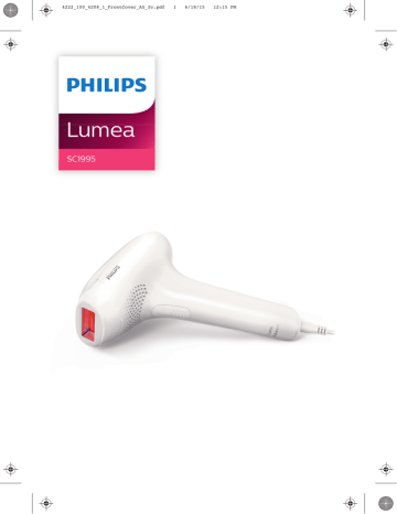 4222_100_4208_1_FrontCover_A5_fc.pdf Lumea SC1995 1 6/18/15 12:15 PM 2 3 4 9 5 8 1 10 11 7 6 13 14 12 English 5 Czech 19 Romna 33 Polski 48 Slovenščina 63 繁體中文 77 English 5 Welcome Welcome to the beauty world of Lumea! You are only a few weeks away from silky-smooth skin. Philips Lumea uses Intense Pulsed Light (IPL) technology, known as one of the most effective methods to continuously prevent hair regrowth. In close cooperation with licensed dermatologists we adapted this light-based technology, originally used in professional beauty salons, for easy and effective use in the safety of your home. Philips Lumea is gentle and offers convenient and effective treatment at a light intensity that you find comfortable. Unwanted hairs are finally a thing of the past. Enjoy the feeling of being hair-free and look and feel amazing every day. To fully benefit from the support that Philips offers, register your product at www.philips.com/welcome. For further information, please go to www.philips.com/lumea to find our experts' advice, tutorial videos and FAQs and make the most of your Lumea. Device overview 1 2 3 4 5 6 7 8 9 10 11 12 13 14 Light exit window with integrated UV filter Body attachment Reflector inside the attachment Integrated safety system Electronic contacts Flash button Opening for electronic contacts On/off button Intensity lights (1-5) 'Ready to flash' light Air vents Device socket Adapter Small plug Who should not use Lumea? Contraindications - Never use the device if you have skin type V and VI (You rarely to never sunburn, very dark tanning). In this case you run a high risk of developing skin reactions, such as hyperpigmentation and hypopigmentation, strong redness or burns. - Never use the device if you are pregnant or breast feeding as the device was not tested on pregnant or breast feeding women. - Never use the device if you suffer from any of the diseases listed below: - If you have a skin disease such as active skin cancer, you have a history of skin cancer or any other localized cancer in the areas to be treated. English 6 English - If you have pre-cancerous lesions or multiple atypical moles in the areas to be treated. - If you have a history of collagen disorder, including a history of keloid scar formation or a history of poor wound healing. - If you have a history of vascular disorder, such as the presence of varicose veins or vascular ectasia in the areas to be treated. - If your skin is sensitive to light and easily develops a rash or an allergic reaction. - If you have infections, eczema, burns, inflammation of hair follicles, - - open lacerations, abrasions, herpes simplex, wounds or lesions and haematomas in the areas to be treated. - If you have had surgery in the areas to be treated in the last three weeks. - If you have epilepsy with flashlight sensitivity. - If you have diabetes, lupus erythematodes, porphyria or congestive heart disease. - If you have any bleeding disorder. If you have a history of immunosuppressive disease (including HIV infection or AIDS) Never use the device if you take any of the medications listed below: - If your skin is currently being treated with or has recently been treated in the past week with Alpha-Hydroxy Acids (AHAs), Beta-Hydroxy Acids (BHAs), topical isotretinoin and azelaic acid. - If you have taken any form of isotretinoin Accutane or Roaccutane in the last six months. This treatment can make skin more susceptible to tears, wounds and irritations. - If you are on painkillers which reduce the skin's sensitivity to heat. - If you are taking photosensitising agents or medications, check the package insert of your medicine and never use the device if it is stated that it can cause photo-allergic reactions, photo-toxic reactions or if you have to avoid sun when taking this medicine. - If you take anticoagulation medications, including heavy use of aspirin, in a manner which does not allow for a minimum 1-week washout period prior to each treatment. If you take immunosuppressive medications. Never use the device on the following areas: - On the face. - On nipples, areolas, labia minora, vagina, anus and the inside of the nostrils and ears. - Men must not use it on the scrotum and face. - Over or near anything artificial like silicone implants, pacemakers, subcutaneous injection ports (insulin dispenser) or piercings. - On moles, freckles, large veins, darker pigmented areas, scars, skin anomalies without consulting your doctor. This can result in a burn and a change in skin color, which makes it potentially harder to identify skin-related diseases. - On warts, tattoos or permanent make-up. This can result in a burn and a change in skin color. English 7 - On areas, where you use long-lasting deodorants. This can result in skin reactions. - Never use the device on sunburned, recently tanned or fake-tanned skin. Note: This list is not exhaustive. If you are not sure whether you can use the device, we advise you to consult a doctor. Important Danger - Keep the device and the adapter dry. - If the device is broken, do not touch any inner part to avoid electric shock. - Never insert any objects into the device. Warning - This device is not intended for use by persons (including children) with reduced physical, sensory or mental capabilities, unless they have been given supervision or instruction concerning use of the device by a person responsible for their safety. - Children should be supervised to ensure that they do not play with the device. - The device is not intended for children under the age of 15 years. Teenagers aged between 15 and 18 years can use the device with the consent and/or assistance of their parents or the persons who have parental authority over them. Adults of 18 years and older can use the device freely. - Always check the device before you use it. Do not use the device or adapter if it is damaged. Always replace a damaged part with one of the original type. - The adapter contains a transformer. Do 