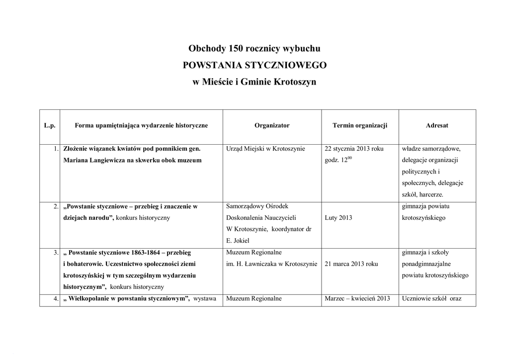 Obchody 150 rocznicy wybuchu POWSTANIA
