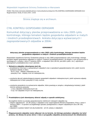 CYKL KONTROLI GOSPODARKI ODPADAMI Komunikat dotyczący