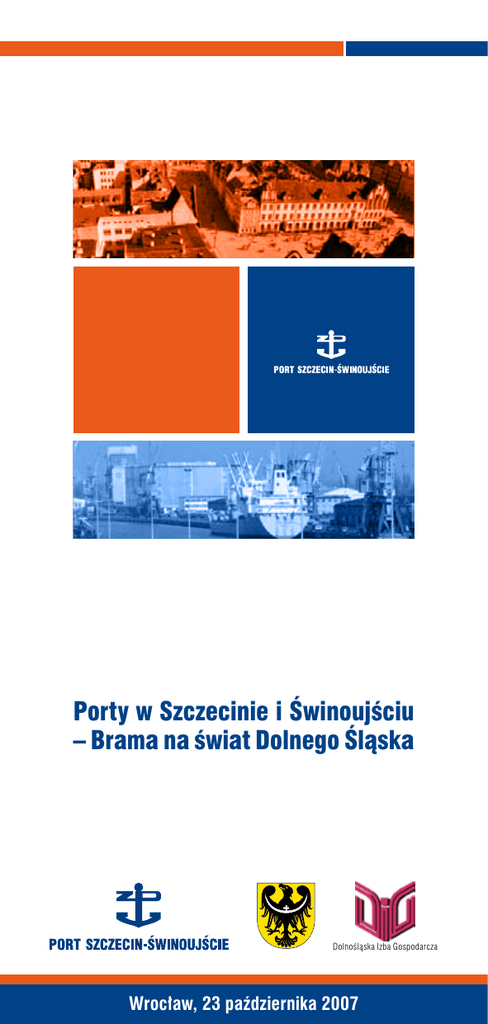 Porty w Szczecinie i Świnoujściu – Brama na świat Dolnego Śląska Dolnośląska Izba Gospodarcza Wrocław, 23 października 2007 Porty w Szczecinie i Świnoujściu – Brama na świat Dolnego Śląska 12:30 Akredytacja uczestników 13:00 Rozpoczęcie spotkania Przywitanie gości Władysław Lisewski Dyrektor ds. Rozwoju Portów Zarząd Morskich Portów Szczecin i Świnoujście SA Andrzej Łoś Marszałek Województwa Dolnośląskiego Patryk Wild Członek Zarządu Województwa Dolnośląskiego Zbigniew Sebastian Prezes Dolnośląskiej Izby Gospodarczej 13:15 Prezentacje Pozycja portów w Szczecinie i Świnoujściu dla obsługi potrzeb transportowych Dolnego Śląska Piotr Jania, Dyrektor ds. Marketingu Zarząd Morskich Portów Szczecin i Świnoujście SA Rzeka Odra – ważny łącznik logistyczny Dolnego Śląska, szanse i zagrożenia Jacek Zawodny, Prezes Zarządu Odratrans SA Możliwości wykorzystania potencjału portów ujścia Odry w operacjach logistycznych Jerzy Wójtowicz, Prezes Zarządu C. Hartwig Szczecin Szanowni Państwo, Zarząd Morskich Portów Szczecin i Świnoujście SA przy współpracy z Urzędem Marszałkowskim Województwa Dolnośląskiego i Dolnośląską Izbą Gospodarczą serdecznie zaprasza Państwa na prezentację oferty portów w Szczecinie i Świnoujście pt. „Porty w Szczecinie i Świnoujściu – Brama na świat Dolnego Śląska”. Patronat honorowy objął Marszałek Województwa Dolnośląskiego. Prezentacja odbędzie się 23 października 2007 o godz. 13:00 w sali konferencyjnej Akademia w Radisson SAS Hotel przy ul. Purkyniego 10 we Wrocławiu. 14:15 Dyskusja 14:40 Podsumowanie spotkania 14:50 Konferencja prasowa 15:00 Obiad (Restauracja Aquarelle) R.S.V.P. do 15.10.2007 Małgorzata Kotiasz tel. 091 430 8145, fax 091 430 8745 [email protected] Port Szczecin-Świnoujście Kompleks portów w Szczecinie i Świnoujściu to jeden z najważniejszych węzłów transportowych w rejonie południowego Bałtyku. Jego atutem jest przede wszystkim strategiczna lokalizacja – na najkrótszej drodze ze Skandynawii do środkowej i południowej Europy oraz przez Bałtyk z Rosji i Finlandii do Niemiec i dalej do Europy Zachodniej. Unikalnym atutem jest połączenie żeglugą śródlądową zarówno z obszarem wzdłuż Odry jak i na zachód z europejskim systemem dróg wodnych. Poprzez autostrady A-11 i A-20 porty włączone są w europejski system autostrad, zaś z południem, po stronie polskiej połączy je wkrótce droga ekspresowa S3, stanowiąca wraz z rzeką Odrą integralną część Środkowoeuropejskiego Korytarza Transportowego, do utworzenia którego dążą województwa Dolnośląskie, Zachodniopomorskie i Lubuskie oraz inne regiony europejskie. Wszystkie nabrzeża portowe dysponują dostępem kolejowym, który zapewnia doskonałe połączenie do Berlina, Hamburga, Poznania i Warszawy, Wrocławia i na Śląsk, Gdyni i Gdańska oraz do Świnoujścia i dalej do Ystad, Malmö, Sztokholmu i Göteborga. Dzięki temu, zapleczem obu portów jest nie tylko obszar Polski, ale także są one najdogodniejszymi portami morskimi dla obszaru wschodnich Niemiec, Czech i Słowacji. Z punktu widzenia podmiotów gospodarczych Dolnego Śląska bardzo istotne są dostępne tu regularne połączenia żeglugowe, a przede wszystkim promowe do Szwecji i Danii, a także do Norwegii, Finlandii, Wielkiej Brytanii, Irlandii i Zachodniej Afryki. Dwa terminale kontenerowe w Szczecinie i Świnoujściu zapewniają obsługę ładunków we wszystkich relacjach światowych przez częste połączenia z portami bazowymi w Hamburgu i Bremerhaven. Prezentowane walory predestynują porty w Szczecinie i Świnoujściu do roli portów morskich Dolnego Śląska. Istotnym atutem jest też duża rezerwa terenowa na rozwój portów zarówno w ich funkcji przeładunkowo-składowej jak i lokowania przemysłu przyportowego. Dla sprostania zwiększającym się wymaganiom rynku Zarząd Morskich Portów Szczecin i Świnoujście SA finalizuje budowę infrastruktury dla nowego terminalu kontenerowego oraz dla powstającego tuż obok nowoczesnego Zachodniopomorskiego Centrum Logistycznego. www.port.szczecin.pl