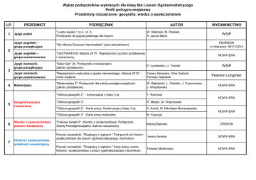 Wykaz podręczników wybranych dla klasy IIIA Liceum