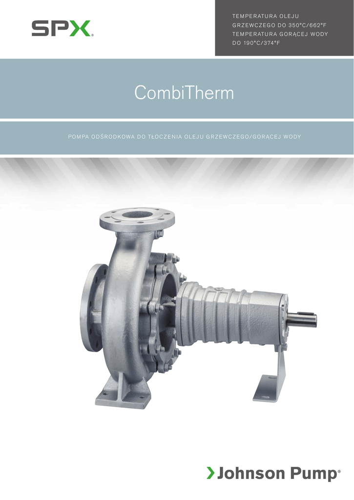 T E M P E R AT U R A O L E J U G R Z EWCZ EGO DO 350°C/662°F T E M P E R AT U R A G O R ĄC E J W O DY D O 19 0 ° C / 3 74 ° F CombiTherm P O M PA O D Ś R O D K O WA D O T ŁO C Z E N I A O LE J U G R Z E W C Z E G O / G O R ĄC E J W O DY Pompa CombiTherm SPX Johnson Pump została opracowana specjalnie z myślą o tłoczeniu oleju grzewczego (DIN 4754) i gorącej wody zgodnie z normą PN-EN 12953-6 (DIN 4752) (wartości znamionowe i wymiary zgodne z normą PN-EN 733 (DIN 24255)). Pompa CombiTherm zapewnia jednolitą temperaturę procesową, chroniąc jednocześnie powierzchnie uszczelnienia i łożyska przed szkodliwym wpływem wysokich temperatur. Pompa CombiTherm została zaprojektowana tak, aby w przypadku zgodności z podanymi parametrami użycie zewnętrznego układu chłodzenia nie było wymagane. Położenie tulei dławiącej, łożyska poprzecznego i uszczelnienia ogranicza cyrkulację i temperaturę wzdłuż pompy. Pozwala to znacznie obniżyć temperaturę powierzchni uszczelnienia i łożysk. W przypadku tłoczenia typowej cieczy o temperaturze 250°C (482°F) na wlocie pompy temperatura oddziałująca na powierzchnie uszczelnień będzie wynosić tylko 100°C (212°F). Pompa CombiTherm została opracowana jako część modułowego systemu Combi. Modułowa konstrukcja umożliwia wymienne stosowanie elementów różnych wariantów pompy oraz innych pomp systemu Combi. Dzięki temu liczba potrzebnych części zamiennych została znacznie ograniczona. SPX oferuje pełną gamę filtrów, zaworów i wymienników ciepła. Mająca siedzibę w Charlotte (Karolina Północna) SPX Corporation (NYSE: SPW) to firma globalna, zajmująca pozycję lidera produkcji w różnych branżach i działająca w więcej niż 35 krajach. Wysoko wyspecjalizowane produkty i technologie firmy są skoncentrowane na „Flow Technology” i infrastrukturze energetycznej. Wiele innowacyjnych rozwiązań SPX pomaga sprostać rosnącemu zapotrzebowaniu na energię elektryczną oraz przetworzoną żywność i napoje, zwłaszcza na rynkach rozwijających się. W ofercie firmy znajdują się m.in. systemy do przetwarzania żywności w branży spożywczej, kluczowe rozwiązania wykorzystywane w przemyśle Oil and Gas, transformatory mocy dla dostawców mediów oraz układy chłodzenia dla elektrowni. Więcej informacji można znaleźć na stronie internetowej www.spx.com M AT E R I A ŁY • Korpus pompy i uszczelnienia mechanicznego wykonane z żeliwa sferoidalnego • Wał z siedemnastoprocentowej utwardzonej stali chromowej zapewnia większą wytrzymałość i trwałość T Y L N I E Ł O PAT K I W I R N I K A I L A B I RY N T • Zapobiegają kontaktowi ciał stałych z łożyskami i uszczelnieniami, ograniczając ich zużycie 350° C 625° F olej grzewczy gorąca woda 200° C 392° F 100° C 212° F 0° C 32° F J P _ 4 1 9 _ P L We r s j a : 0 3 / 2 01 4 Wy d a n o : 07/ 2 01 4 CombiTherm Pompa cyrkulacyjna do tłoczenia oleju grzewczego i gorącej wody S TA N DA R D OW E US ZCZ E LN I E N I E M ECHAN ICZ N E ŁO Ż Y S K O Ś L I Z G OW E • Produkt nasmarowany • Uszczelnienie dopasowane do temperatury tłoczonej cieczy • Zoptymalizowane zapewniające długą żywotność • Zewnętrzny układ chłodzenia nie jest wymagany Typowe zastosowania produktu Transport ciepła z wykorzystaniem oleju Ł O Ż YS K A TO C Z N E • Nie wymagają smarowania i konserwacji • Łożysko kulkowe zwykłe lub łożysko kulkowe dwurzędowe skośne grzewczego Systemy OEM, utrzymywanie odpowiedniej temperatury urządzeń płaszczowych Systemy dla przemysłu morskiego i pływających punktów produkcji Ogrzewacze zbiorników paliwa i wstępne ogrzewanie paliwa, ogrzewanie ładunków i produktów, wytwarzanie pary Przemysł spożywczy Piece, zakłady zajmujące się D UŻA P OW I E R Z C H N I A C H ŁO D Z E N I A I ŁO PAT K I C H ŁO D Z ĄC E Ł AT WA KO N S E R WAC J A • Konstrukcja typu back pull out nie ma konieczności demontażu pompy z orurowania. • Uszczelnienie nie ma bezpośredniego kontaktu z tłoczoną cieczą • Umożliwia odprowadzenie ciepła tłoczonej cieczy zanim dotrze ono do uszczelnienia i łożysk i uszkodzi je smażeniem ryb, destylacją kwasów tłuszczowych i gliceryny, zmiękczaniem tłuszczów oraz produkcją czipsów ziemniaczanych i mleka w proszku Bitumy Produkcja asfaltu, drogi i pokrycia dachów Guma i tworzywa sztuczne Dane techniczne Maksymalna wydajność: Maksymalna wysokość podnoszenia: Maksymalna temperatura cieczy: Maksymalne ciśnienie robocze: Maksymalna prędkość obrotowa: 350 m3/godz. (1541 gal./min) [50 Hz] 400 m3/godz. (1761 gal./min) [60 Hz] 110 m (361 ft) [50 Hz] 160 m (525 ft) [60 Hz] olej grzewczy 350°C (662°F), gorąca woda 190°C (374°F) 16 bar (232 psi) 3600 obr./min M AT E R I A Ł Formowanie wtryskowe, taśma PCW, włókna sztuczne Przemysł chemiczny Mieszadła, reaktory, suszarnie, polimeryzacja, tworzywa sztuczne Przemysł papierniczy i drzewny Kalandry, karton, myjki, KO R P U S P O M PY Ż E L I WO S F E R O I DA L N E WI R N I K Ż E L I WO L U B S TA L N I E R D Z E W N A P O K RY WA U S Z C Z E L N I E N I A M ECHAN ICZ N EGO Ż E L I WO S F E R O I DA L N E WA Ł P O M PY S I E D E M N A S TO P R O C E N TOWA S TA L C H R O M OWA Cyrkulacja gorącej wody M AT E R I A Ł U S Z C Z E L N I E N I A M ECHAN ICZ N EGO G R A F I T U / C r M o - S TA L L U B G R A F I T U / S i C Szpitale, układy ogrzewania J P _ 4 1 9 _ P L We r s j a : 0 3 / 2 01 4 Wy d a n o : 07/ 2 01 4 maszyny suszące, panele podłogowe i drewniane CombiTherm Instalacje oleju grzewczego i gorącej wody Wymiary Rysunek wymiarowy CAD udostępniany na żądanie. KOŁNIERZE ZGODNE Z NORMĄ ISO 7005 PN16 ~ = EN1092-2 aa tb am DIN748 ea ed 5 aa ae 120 150 ∅12 vc aa 50 50 50 65 65 65 65 65 65 80 80 80 10 0 10 0 10 0 12 5 12 5 12 5 15 0 ab 32 32 32 40 40 40 50 50 50 65 65 65 80 80 80 10 0 10 0 10 0 12 5 db 13 2 16 0 18 0 13 2 16 0 18 0 16 0 16 0 18 0 16 0 18 0 200 18 0 18 0 200 20