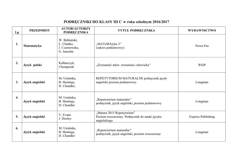 PODRĘCZNIKI DO KLASY III C w roku szkolnym 2016/2017