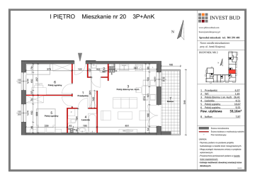 Mieszkanie nr 20 - trzypokojowe 59,16m2