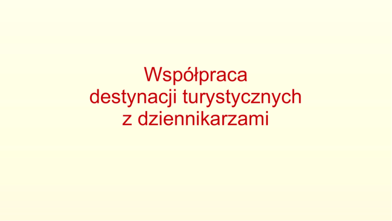 Współpraca destynacji turystycznych z dziennikarzami Kim jestem? Anna Olej-Kobus ● ● ● ● dziennikarka fotografka blogerka podróżniczka Publikacje: ● ● ● ● ● ● ● 20 albumów 15 książek i przewodników 10 przewodników dla dzieci około 1000 artykułów liczne audycje radiowe bank ok. pół miliona zdjęć Portal: malypodroznik.pl Jak budować współpracę z mediami? ● Można kupić gotowe bazy dziennikarzy (często są nieaktualne) ● Lepiej jest tworzyć własną ● Zbieraj kontakty przy każdej okazji (też mailingu) ● Regularnie aktualizuj bazę ● Warto ją personalizować Personalizacja kontaktów ● Dostosowanie komunikatów do konkretnej osoby (co innego miłośnikom wina / aktywności / ekologii) ● Notuj jakie kto ma zainteresowania (social media – kopalnia wiedzy!) ● Aktualizuj sytuację osobistą (zaręczyny, rodzicielstwo, nowa pasja) Podtrzymuj kontakty! ● Odpowiadaj szybko na maile (powinien być dedykowany mail do kontaktów z mediami by mail od dziennikarza nie ginął w setkach innych maili) ● Oddzwaniaj jeżeli jesteś o to proszony ● Sprawdzaj social media, dawaj lajki i reaguj! ● ● ● ● Odpowiadaj na pytania szczególnie szybko gdy tekst/materiał jest przygotowywany Gdy nie znasz odpowiedzi – powiedz to! Gdy powiadomiono Cię o publikacji – podziękuj i pochwal się u siebie (PISZĄ O NAS)! Gdy zauważyłeś błąd poinformuj dziennikarza o tym by nie pojawił się ten sam błąd w kolejnej publikacji! Pamiętaj: Dziennikarz też człowiek i zwykle w niedoczasie! Buduj życzliwe relacje ● Lepsze są osobiste niż biznesowe. ● Warto wspierać obecność dziennikarzy w swojej destynacji. ● Oferuj noclegi i wyżywienie nie opierając się tylko na zaplanowanych study tours dla dziennikarzy. Często dziennikarz zainteresowany destynacją ze sprawdzonym portfolio może być skuteczniejszy niż autokar przypadkowych dziennikarzy! ● Pomóż znaleźć informacje. ● Przesyłaj informacje o nowych działaniach / atrakcjach w destynacji. ● Bądź w kontakcie. Co jest najważniejszym kapitałem w kontakcie z mediami? ● ● ● życzliwość zaufanie pamięć Dziennikarz nawet po pierwszej wizycie w danej destynacji może stać się jej ambasadorem!!! Redakcja czy freelancer? Redakcja: 100% gwarancji publikacji – zwykle jednorazowy materiał Freelancer: – – – – – brak 100% gwarancji publikacji natychmiast współpraca z wieloma tytułami niezależni bardziej się starają możliwość kilkukrotnej publikacji materiału o danej destynacji w różnych tytułach Warto współpracować z każdym! Blogosfera, social media i... ● Często większy zasięg niż tradycyjne media ● Specjalizacja tematyki (czasem bardzo wąska!) ● Możliwość dotarcia do entuzjastów ● Dotarcie do nowych grup odbiorców ● Nowe formy przekazu (vlogi, live streaming) ● Dziennikarze radiowi – audycje już nie znikają! ● Portale specjalistyczne – publikacje nie znikają! Uwaga! Trzeba nauczyć się odróżniać prawdziwe portale będące kopalnią wiedzy od tych, które powstały by ściągać śmieciową reklamę. Pamiętaj! ● ● ● Dziennikarz to medium – musi dostarczyć swoim odbiorcom ciekawy materiał Zadaj sobie pytanie: Co może zainteresować czytelników/słuchaczy/widzów? Musisz wyjść poza myślenie mieszkańca danej destynacji. To co dla Ciebie jest oczywiste i może mało interesujące, dla kogoś mieszkającego w innym województwie może być objawieniem! Jak przygotować notkę prasową? ● Im lepiej przygotowana tym większa szansa publikacji. ● Im prościej powiemy co jest dla nas ważne – tym lepiej. ● Pisz krótko i zwięźle. ● Przygotuj jasny i czytelny lead. ● Musisz zaciekawić. ● Podaj osobę kontaktową! Lead – podstawowe zasady: ● Lead odpowiada na pytania: kto – co – kiedy – gdzie – dlaczego (opcjonalnie) Lead to 2-3 zdania – maksymalnie ok. 25 słów – ● ● Czasem to jedyne co przeczyta dziennikarz! Notka prasowa Atrakcyjność tematu dla dziennikarza wzrasta gdy: - mówimy o konkretnych osobach – opowiadamy coś na ich przykładzie - pojawiają się znane osoby – można przytoczyć ich nazwiska poprosić o komentarz - pojawia się coś charakterystycznego, co pozwala zapamiętać ten tekst Notka prasowa – warto wiedzieć ● ● ● ● ● ● Lepiej wkleić treść do maila niż słać tylko jako załącznik. Z braku czasu odkłada się czytanie załączników na potem (często: nigdy). Na wielu komputerach/tabletach dokument Word może się źle otwierać – zawsze wysyłaj również PDFa! Nigdy nie wysyłaj złej jakości zdjęć! NIGDY! Jeśli zależy nam na publikacji – warto po wysłaniu maila zadzwonić i sprawdzić czy wiadomość dotarła. Czasem dopiero wtedy dziennikarz do niej sięgnie. Wywiad, rozmowa ● ● Wywiad – rozmowa telefoniczna może być nagrywana (i upubliczniona). Warto spytać, czy rozmowa będzie nagrywana, czy idzie na żywo na antenę. Droga do sukcesu: Sukces jak góra lodowa: POWODZENIA!