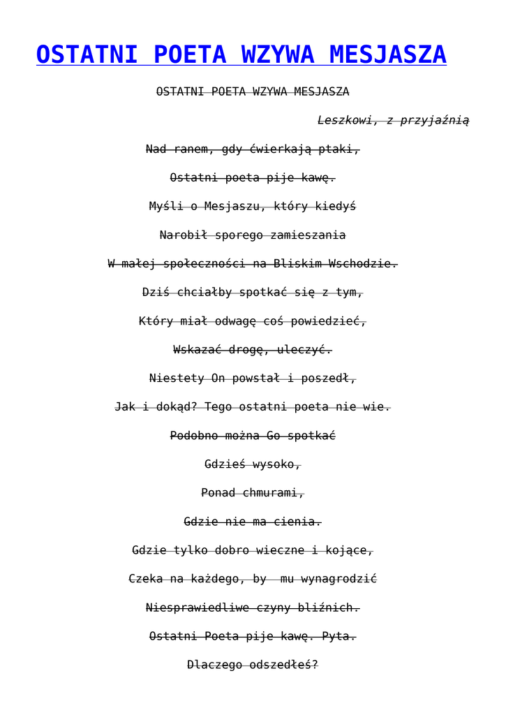 OSTATNI POETA WZYWA MESJASZA