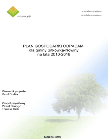 Aktualizacja Planu Gospodarki Odpadami dla gminy Sitkówka