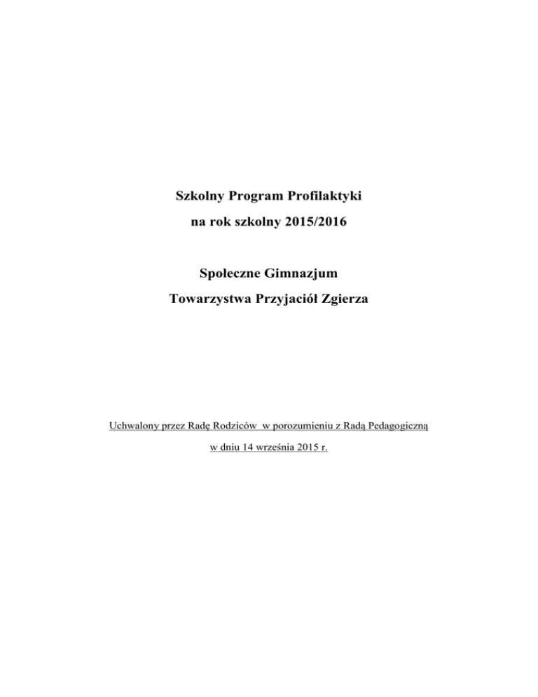 Szkolny Program Profilaktyki na rok szkolny 2015