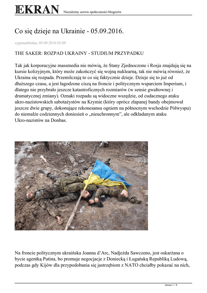 Niezależny serwis społeczności blogerów Co się dzieje na Ukrainie - 05.09.2016. zygmuntbialas, 05.09.2016 02:09 THE SAKER: ROZPAD UKRAINY - STUDIUM PRZYPADKU Tak jak korporacyjne massmedia nie mówią, że Stany Zjednoczone i Rosja znajdują się na kursie kolizyjnym, który może zakończyć się wojną nuklearną, tak nie mówią również, że Ukraina się rozpada. Przemilczają to co się faktycznie dzieje. Dzieje się to już od dłuższego czasu, a jest łagodzone ciszą na froncie i politycznym wsparciem Imperium, i dlatego nie przybrało jeszcze katastroficznych rozmiarów (w sensie gwałtownej i dramatycznej zmiany). Oznaki rozpadu są widoczne wszędzie, od cudacznego ataku ukro-nazistowskich sabotażystów na Krymie (który oprócz złapanej bandy obejmował jeszcze dwie grupy, dokonujące rekonesansu ogniem na północnym wschodzie Półwyspu) do niemalże codziennych doniesień o „nieuchronnym”, ale odkładanym ataku Ukro-nazistów na Donbas. Na froncie politycznym ukraińska Joanna d’Arc, Nadjeżda Sawczeno, jest oskarżana o bycie agentką Putina, bo promuje negocjacje z Doniecką i Ługańską Republiką Ludową, podczas gdy Kijów dla przypodobania się jastrzębiom z NATO chciałby pokazać na nich, strona 1 / 8 Niezależny serwis społeczności blogerów „jak się walczy z Rosjanami”. Realia są takie, że strumień pomocy finansowej z Imperium dla Ukrainy prawie zupełnie wysechł, gdy okazało się, że Ukry potrafią rozkraść prawie wszystkie pieniądze i nikt nie kupuje już hasła „Ruskie nadchodzą!”. Zapewne ukro-nazisotwski projekt urządzenia Ukrainy wyczerpał już swoją przydatność i nikogo nie obchodzi, co się stanie z samymi Ukraińcami. To duży błąd. Somalia przy granicach Unii Europejskiej Niemożliwym jest oszacowanie, ile osób mieszka jeszcze na Ukrainie, ale większość ekspertów mówi o populacji 35-40 milionów ludzi. Większość z nich walczy o przetrwanie, a ich przyszłość wygląda niewesoło. Pamiętacie pięć etapów rozpadu systemu społecznego Dmitrija Orłowa? http://cluborlov.blogspot.com/p/the-five-stages-of-collapse.html Oto one: Etap pierwszy: Upadek finansowy. Wiara że „sprawy będą się toczyć tak jak zwykle”, zanika. Etap drugi: Upadek gospodarczy. Wiara, że „rynek dostarczy potrzebnych towarów”, zanika. Etap trzeci: Upadek polityczny. Wiara, że „rząd pomoże”, zanika. Etap czwarty: Upadek społeczny. Wiara, że „ludzie pomogą”, zanika. Etap piąty: Upadek kulturowy. Wiara w ludzkość zanika. Nawet pobieżne spojrzenie na to, co się dzieje na Ukrainie, wskazuje, że już jakiś czas temu osiągnięto etap piąty. Następny etap to Somalia, wielka Somalia z milionami karabinów wśród cywilnej populacji, z wielkimi obiektami przemysłowymi, zdolnymi wywołać katastrofy rozmiarów Czarnobyla, z własnymi prywatnymi lub pół-oficjalnymi szwadronami śmierci, swobodnie poruszającymi się po kraju i wprowadzającymi swoje porządki za pomocą transporterów opancerzonych i ciężkich karabinów maszynowych. Jeśli więc eurocentryczny Zachód mógł ignorować Somalię w Somalii, to nie może już ignorować Somalii na granicy UE i NATO. Nie ma żadnej naturalnej przeszkody pomiędzy Somalią na Ukrainie a Unią Europejską. Ta nieunikniona katastrofa, jak już się wydarzy, to eksplozja znajdzie sobie najłatwiejszą drogę ujścia energii. strona 2 / 8 Niezależny serwis społeczności blogerów Na wschodzie jest Rosja z jej świetnie działającymi służbami bezpieczeństwa i nowo utworzoną Gwardią Narodową, dużymi wojskami, rozmieszczonymi wokół granic i co najważniejsze – z perfekcyjnym rozumieniem procesów zachodzących właśnie na Ukrainie. Zachód to w zasadzie Europa Conchity Würst, niezdolna do sformułowania jakiejkolwiek polityki (polecenia przychodzą przecież od Wujka Sama), z wojskiem na parady i defilady, bredząca o „rosyjskim zagrożeniu”, z siłami bezpieczeństwa, które nie dają sobie rady nawet z dzisiejszą falą imigrantów, a co najważniejsze, z klasą rządzącą i społeczeństwem, niezdolnym do zrozumienia tego, co się dzieje na Ukrainie. Rosja ma jeszcze jedną przewagę. Kontroluje Krym i Noworosję, i rozwinęła już umiejętności, potrzebne do obsługi milionów uchodźców. Kiedy zachodni politycy obwiniali Rosję o wszystko i składali absolutnie idiotyczne obietnice Ukraińcom, Rosja przyjęła około półtora miliona uchodźców, wśród których nie tylko odsiewano nazistowskich sabotażystów, ale również rozmieszczono ich mądrze po całym kraju. Służby migracyjne wykonywały dobrą robotę, na przykład umieszczając lekarzy tam, gdzie byli potrzebni (na przykład w Czeczenii). Jeśli zdarzy się nieuchronna katastrofa, wtedy Europejczycy otrzymają najsilniejszy cios i strona 3 / 8 Niezależny serwis społeczności blogerów będą sprowadzeni do parteru w walce z sytuacją. Widząc jak całkowicie niekompetentne i bezmyślne są elity kompradorskie Unii Europejskiej, możemy oczekiwać, że będą wprowadzały dalszy chaos, jak to zwykle czynią, i martwiły się jedynie swoim politycznym wizerunkiem wynikłym z reakcji na katastrofę. Amerykanie chronieni Oceanem Atlantyckim, jak zwykle, będą dostarczali „przywództwa”, „wsparcia”, ale żadnego dolara na cele ogarnięcia sytuacji. Politycznie zrobią to, co zwykle robią w takich przypadkach, ogłoszą zwycięstwo i wyjadą. W takim przypadku sytuacja będzie naprawdę katastrofalna i zachodni politycy będą musieli opuścić swoje wygodne salony: będą musieli polecieć do Moskwy, aby to Rosjanie zajęli się bałaganem. Rosjanie nie nadchodzą (znowu) Nigdy nie przestanę powtarzać, że Rosja jest o wiele słabsza niż to się wydaje. Ma olbrzymie terytorium i siły zbrojne zapewne najlepsze na ziemi, ale boryka się z niskim zaludnieniem i kłopotami gospodarczymi. Faktycznie perspektywy na przyszłość Rosji są bardzo zachęcające, ale 