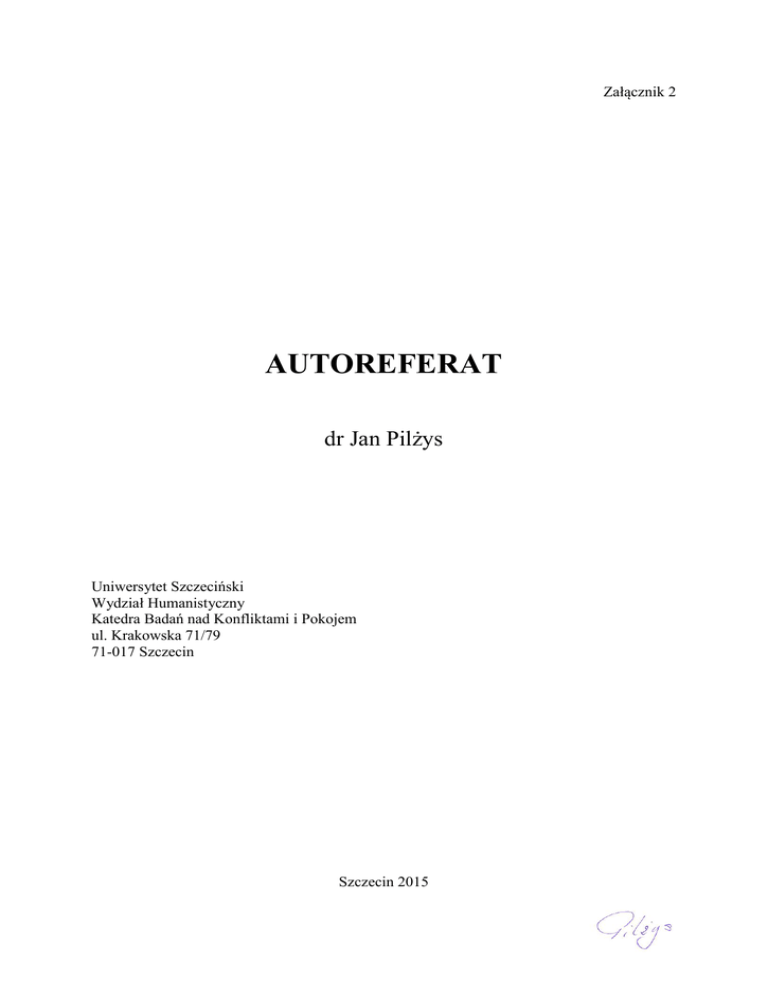 Załącznik 2 AUTOREFERAT dr Jan Pilżys Uniwersytet Szczeciński Wydział Humanistyczny Katedra Badań nad Konfliktami i Pokojem ul. Krakowska 71/79 71-017 Szczecin Szczecin 2015 2 1. Imię i nazwisko Jan Pilżys 2. Posiadane dyplomy, stopnie naukowe Tytuł zawodowy: inżynier-dowódca – 1980 Wyższa Szkoła Oficerska Wojsk Obrony Przeciwlotniczej w Koszalinie tytuł pracy dyplomowej: Potrzeby i możliwości rozbudowy fortyfikacyjnej ugrupowania obronnego baterii przeciwlotniczej S-60, promotor: ppłk inż. Roman Kacała magister wychowania technicznego – 1995 Wyższa Szkoła Inżynierska w Koszalinie Wydział Mechaniczny, tytuł pracy dyplomowej: Polskie konstrukcje pojazdów bojowych do 1939 roku, promotor: prof. nadzw. dr hab. Bogusław Polak stopień doktora nauk humanistycznych w specjalności historia – 2001 Wojskowy Instytut Historyczny Akademii Obrony Narodowej w Warszawie, tytuł rozprawy doktorskiej: Wyższa Szkoła Oficerska Wojsk Obrony Przeciwlotniczej w Koszalinie 1967-1997, promotor: prof. nadzw. dr hab. Bogusław Polak 3. Informacje o dotychczasowym zatrudnieniu 1980 – 1981 – 1981 5. Pułk Przeciwlotniczy 5. DPanc (Gubin) 1990 Wyższa Szkoła Oficerska Wojsk Obrony Przeciwlotniczej (Koszalin) 1990 – 1993 Wyższa Szkoła Oficerska Wojsk Obrony Przeciwlotniczej (Koszalin) 1993 – 1994 Centrum Szkolenia Obrony Przeciwlotniczej (Koszalin) 1995 – 1997 Wyższa Szkoła Oficerska Wojsk Obrony Przeciwlotniczej (Koszalin) 1998 – 2003 Centrum Szkolenia Obrony Przeciwlotniczej (Koszalin) 2002 – 2004 Bałtycka Wyższa Szkoła Humanistyczna (Koszalin) 2003 – 2004 Instytut Politologii i Europeistyki Uniwersytetu Szczecińskiego 2004 – 2008 Zakład Badań nad Konfliktami i Pokojem Instytutu Politologii i Europeistyki Uniwersytetu Szczeciński 2007 – 2008 Wyższa Szkoła Integracji Europejskiej (Szczecin) od 2008 Katedra Badań nad Konfliktami i Pokojem Wydział Humanistyczny Uniwersytetu Szczecińskiego 2010 – 2014 Wyższa Szkoła Pedagogiczna TWP w Warszawie Wydział zamiejscowy w Człuchowie dowódca plutonu dowódca plutonu, dowódca kompanii instruktor starszy instruktor wykładowca starszy wykładowca wykładowca wykładowca adiunkt wykładowca adiunkt wykładowca 3 4. Wskazane osiągnięcia wynikające z artykułu 16 ust 2 Ustawy z dnia 14 marca 2003 r. o stopniach naukowych i tytule naukowym oraz o stopniach i tytule w zakresie sztuki (Dz. U. Nr 65, poz. 595 z późn. zm.); Rozporządzenia Ministra Nauki i Szkolnictwa Wyższego z dnia 14.10.2014 r. w sprawie szczegółowego trybu i warunków przeprowadzenia czynności w przewodzie doktorskim, postępowaniu habilitacyjnym oraz postępowaniu o nadanie tytułu profesora w paragrafie 12, ust. 2 pkt 3 (Dz. U. 2014, poz. 1383) a) tytuł osiągnięcia naukowego: J. Pilżys, Łączność w systemach zarządzania kryzysowego i ratownictwa w Polsce – Teoria i praktyka, Wydawnictwo Naukowe Uniwersytetu Szczecińskiego, Szczecin 2015, ss. 364 (ISBN 978-83-7972-008-8) b) autor/autorzy, tytuł publikacji, nazwa wydawnictwa, miejsce i rok wydania J. Pilżys, Łączność w systemach zarządzania kryzysowego i ratownictwa w Polsce – Teoria i praktyka, Wydawnictwo Naukowe Uniwersytetu Szczecińskiego, Szczecin 2015, ss. 364 (ISBN 978-83-7972-008-8) c) omówienie celu naukowego ww. pracy i osiągniętych wyników wraz z omówieniem ich ewentualnego wykorzystania Monografia Łączność w systemach zarządzania kryzysowego i ratownictwa w Polsce – Teoria i praktyka (Szczecin 2015), stanowi, jak do tej pory, ukoronowanie moich badań w latach 2005-2015, nad systemem zarządzania kryzowego i ratownictwa w Polsce. Jest wynikiem przemyśleń podczas wieloletniej pracy w Katedrze Badań nad Konfliktami i Pokojem Wydziału Humanistycznego Uniwersytetu Szczecińskiego oraz rezultatem wymiany doświadczeń podczas licznych spotkań z pracownikami naukowymi oraz służb ratownictwa i bezpieczeństwa publicznego. Dokonanie analizy stanu wiedzy zawartej w aktach prawnych i literaturze fachowej, danych uzyskanych na podstawie badań przeprowadzonych przez wyspecjalizowane instytucje, umożliwiło zdiagnozowanie rzeczywistego stanu badań i poznanie go, w celu udzielenia precyzyjnej odpowiedzi na pytanie, stanowiące jednocześnie problem badawczy: Czy założenia teoretyczne i rozwiązania praktyczne, stosowane obecnie w sieciach i systemach łączności zarządzania kryzysowego i ratownictwa, są efektywnie wykorzystywane w rozwiązywaniu sytuacji kryzysowych? Według założeń teoretycznych istnieje konieczność nowego spojrzenia menedżerów na łączność w podsystemach funkcjonalnych systemu bezpieczeństwa narodowego. Jest ona szczególnym rodzajem zabezpieczenia działań elementów każdego systemu na wszystkich szczeblach struktur kierowania i dowodzenia. Powinna integrować służby w zdecydowanym i skutecznym działaniu w każdej sytuacji kryzysowej. Mimo że literatura przedmiotu podejmuje te kwestie, jednak nadal pozostaje problem wykorzystania nagromadzonej wiedzy w publikacjach czy pracach naukowo-badawczych przez pracowników instytucji stojących na straży bezpieczeństwa państwa i jego społeczeństwa. W dalszym ciągu istnieją bariery w komunikacji lub też brakuje ogniw, które stworzyłoby most współpracy, porozumienia w odniesieniu do rozwiązywania problemów bezpieczeństwa, w tym łączności cywilno-wojskowej. Pokonanie zauważonych przez autora barier pozwoliłoby na stworzenie wspólnej platformy zarządzania wiedzą. Natomiast istotą założeń praktycznych jest w przede wszystkim wcielanie w życie nagromadzonej wiedzy, koncepcji rozwiązań problemów. Proces ten wymaga zaangażowania menedżerów-specjalistów, wykazujących umiejętność zmodyfikowania już przyjętych wzorców pracy, użycia sił i środków w działaniu, uwzględniających dynamikę i zmienność zaso- 4 bów oraz realizowania misji celów na korzyść rozwiązań systemowych łączności i ich otoczenia. Istotnym w 
