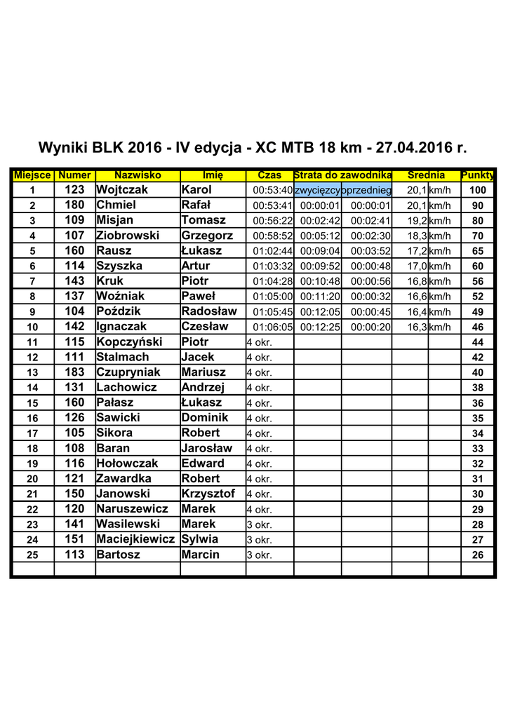 Wyniki BLK 2016 - IV edycja - XC MTB 18 km