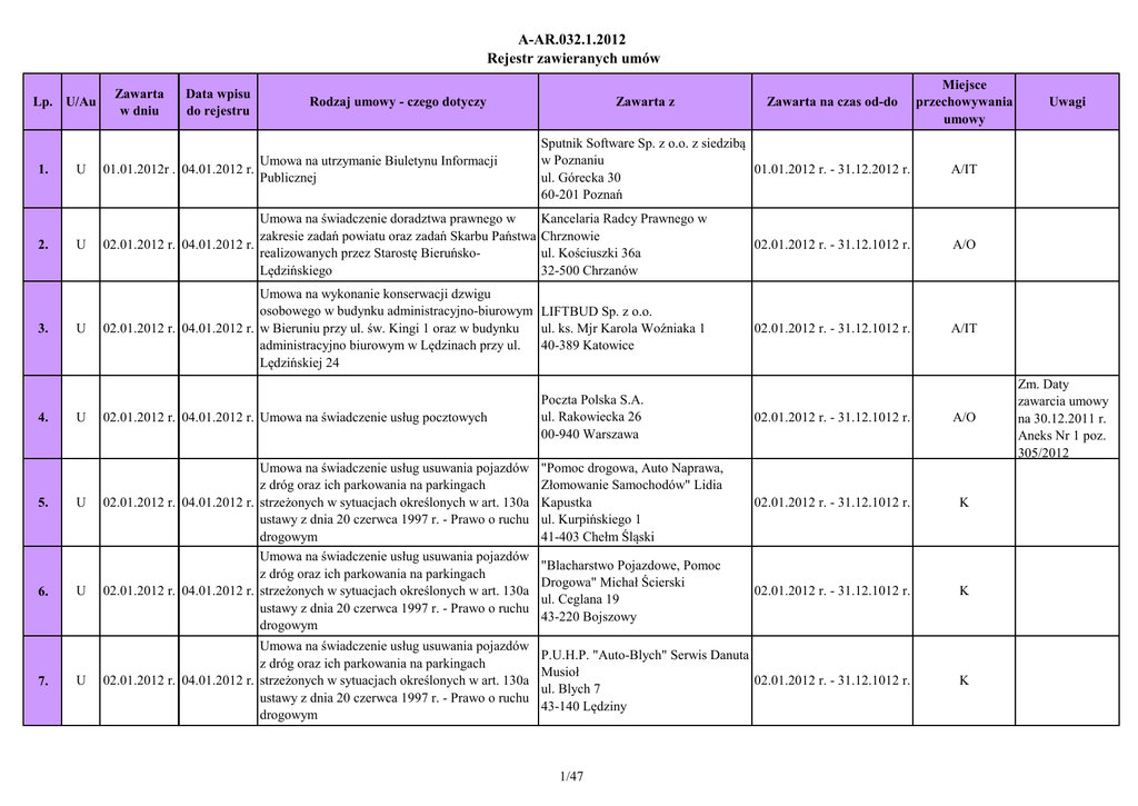 A-AR.032.1.2012 Rejestr zawieranych umów - BIP