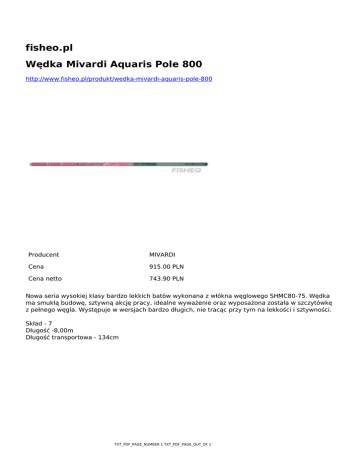 fisheo.pl Wędka Mivardi Aquaris Pole 800