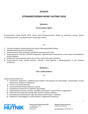 statut stowarzyszenia nowy hutnik 2010