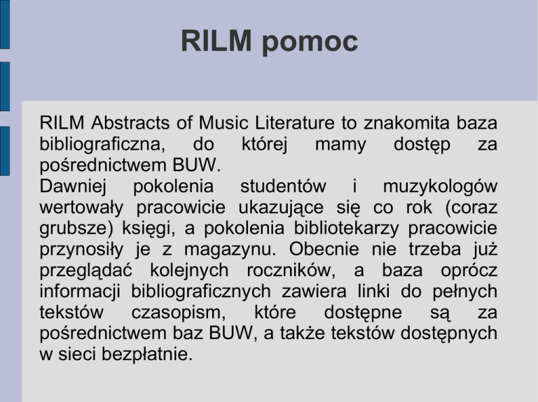 RILM pomoc - Biblioteka Instytutu Muzykologii UW