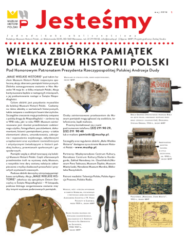 J e d n o d Jesteśmy n i ó w k a o k o l i c z n o ś c i o w maj 2016 1 a Redakcja: Muzeum Historii Polski , ul. Mokotowska 33/35, 00–560 Warszawa , tel. 22 211 90 02, [email protected] | Zdjęcia: MHP | Projekt graficzny: Zerkaj Studio WIELKA ZBIÓRKA PAMIĄTEK DLA MUZEUM HISTORII POLSKI Pod Honorowym Patronatem Prezydenta Rzeczypospolitej Polskiej Andrzeja Dudy „MAŁE WIELKIE HISTORIE” pod takim hasłem Muzeum Historii Polski rozpoczyna społeczną akcję zbierania pamiątek historycznych. Zbiórka zainaugurowana zostanie w Noc Muzeów 14 maja br. w kilku miastach Polski. Akcja kontynuowana będzie w następnych miesiącach, a jej podsumowanie nastąpi w Święto Niepodległości. Celem zbiórki jest pozyskanie muzealiów do kolekcji Muzeum Historii Polski. Czekamy na różne obiekty o wartościach historycznych, także związane z osobistymi losami darczyńców. Szczególne znaczenie mają przedmioty związane z polską drogą do Niepodległości – zarówno tej w 1918 roku, jak i w roku 1989. Muzeum zainteresowane jest również przedmiotami codziennego użytku, fotografiami, pocztówkami, dokumentami, listami i pamiętnikami, prasą – a także elementami ubioru, umundurowania, uzbrojenia i wyposażenia wojskowego, zabytkowymi urządzeniami oraz wyrobami rzemieślniczymi i artystycznymi świadczącymi o historii polskiej kultury, przemianach społecznych i gospodarczych. Pamiątki wejdą w skład tworzącej się kolekcji Muzeum Historii Polski. Część ofiarowanych przedmiotów trafi na wystawę stałą Muzeum, a wszystkie inne dary zostaną należycie zabezpieczone z myślą o badaczach przeszłości i przyszłych wystawach czasowych. Podczas zbiórki darczyńcy otrzymają pamiątkowe certyfikaty. Akcja „MAŁE WIELKIE HISTORIE” zakończy się specjalnym Dniem Darczyńcy w Święto Niepodległości – 11 listopada, podczas którego zorganizowana zostanie między innymi wystawa podarowanych pamiątek. W ACHLARZ ZBIORY ZE STRUSICH PIÓR , OKRES MIĘDZYWOJENNY, MHP Osoby zainteresowane przekazaniem do Muzeum pamiątek mogą zgłaszać się osobiście, telefonicznie, bądź mailowo. Prosimy kontaktować się z nami pod numerem telefonu: (22) 211 90 29, B IBLIA G DAŃSKA ( PROTESTANCKI PRZEKŁAD B IBLII NA JĘZYK P OLSKI , DOKONANY WSP ÓLNIE PRZEZ BRACI CZESKICH I KALWINISTÓW ), S TEFANA O RBANA , 1726 R ., D RUKARNIA ZBIORY MHP (22) 211 90 48 lub e-mailem: pa miat ki@mu zhp.pl . Szczegóły oraz regulamin zbiórki „Małe Wielkie Historie” dostępne są na stronie Muzeum Historii Polski – www.mu zhp.pl . A MERYKAŃSKA MASZYNA KASOWA W STYLU SECESYJNYM , Partnerzy: Międzynarodowe Centrum Kultury, Narodowe Centrum Kultury/Galeria Kordegarda, Zakład Narodowy im. Ossolińskich/Muzeum Pana Tadeusza, Muzeum Śląskie, Muzeum Miasta Łodzi, Narodowe Muzeum Morskie, Biblioteka Raczyńskich. OK . 1910 R ., ZBIORY Patroni medialni: Telewizja Polska, Polska Agencja Prasowa, Polskie Radio. W IDELEC , NÓŻ I ŁYŻECZKA WYKONANE W FABRYCE N ORBLINA , P OCHODZĄCE Z PRZYDZIAŁU MOBILIZACYJNEGO A LEKSANDRA S CHOTTKA P IECHOTY PRZED B LUZA 1939 R ., Z 79. P UŁKU W S ŁONIMIU , ZBIORY MHP P OLOWA NALEŻĄCA DO C ZESŁAWA J AGODZIŃSKIEGO , WALCZĄCEGO W 2. K ORPUSIE P OLSKICH S IŁ Z BROJNYCH NA Z ACHODZIE , 1942-1947 R ., ZBIORY MHP P OCZTÓWKA „W ARSZAWA . S TARE M IASTO ”, 1912 R ., ZBIORY MHP MHP 2 Jesteśmy, maj 2016 Jesteśmy, maj 2016 MUZEUM HISTORII POLSKI WARTO PRZEJRZEĆ SZUFLADY I STRYCHY R O Z M O WA Z D Y R E K T O R E M M U Z E U M Zbiórka pamiątek to pierwsza tego typu inicjatywa MHP. Do tej pory zbiory pozyskiwane były w jaki sposób? Już wcześniej otrzymywaliśmy dary oraz robiliśmy zakupy u antykwariuszy i na aukcjach. Dotąd jednak nie odważyliśmy się wystąpić z tym wobec szerokiej opinii publicznej. Sądziliśmy, że akcja zbierania pamiątek ma sens wówczas, kiedy perspektywa otwarcia budynku staje się realna, kiedy będziemy mogli korzystać z tych obiektów przy projektowaniu naszej wystawy. Dzisiaj mamy już miejsce, w którym stanie gmach, mamy środki finansowe i rozpoczęliśmy pracę z architektami. Przedmioty, które otrzymamy od darczyńców znajdą się pod dachem Muzeum Historii Polski. Co jest celem zbiórki? I jak długo potrwa? Formalnie zaczynamy 14 maja w Noc Muzeów i kończymy 11 listopada br., jednak gromadzenie zbiorów jest procesem ciągłym, wpisanym w misję każdego muzeum. Przedmioty zabytkowe są bowiem świadkami historii, świadkami tylko pozornie niemymi. Wnikliwa praca muzealnika i historyka potrafi wydobyć wiedzę o świecie z banalnych – zdawałoby się – przedmiotów. Dawne przedmioty, dokumenty, plakaty, historyczne pamiątki i broń, czasem stroje czy przedmioty codziennego użytku opowiadają o wielkiej historii i dziejach ich właścicieli. Te „małe” dzieje – rodzinne, osobiste często wpisują się w opowieść o losach ojczyzny, dramat wojny czy represji z okresu komunizmu. Opowiadają one również o sposobie codziennego życia, stylu ubierania się i zachowania naszych dziadków. Polska historia, to wielki fresk, na który składa się wiele drobnych elementów. S REBRNY ZEGAREK KIESZONKOWY SZWA JCARSKIEJ FIRMY Q UARTIER -G IRARD WYPRODUKOWANY NA RYNEK ROSYJSKI , KONIEC XIX/ P OCZĄTEK XX ZBIORY MHP W ., H I S T O R I I P O L S K I R O B E R T E M K O S T R O C YLINDER , PRZED Jakiej spodziewa się Pan reakcji Polaków? Skala zainteresowania akcją jest dzisiaj niemożliwa do oszacowania. Ale niezależnie od tego, czy darczyńców będzie 20, 100 czy 100 tysięcy zależy nam przede wszystkim na poinformowaniu szerokiej publiczności, że prace nad Muzeum ruszyły pełną parą. Chcemy żeby dowiedzieli się, że jest takie miejsce, które chce opowiedzieć naszą wspólną historię. Warto zatem przejrzeć szuflady i strychy i może przekazać do naszych zbiorów szablę ze ściany pradziadka, album ze zdjęciami przedwojennej Gdyni, a może kilka plakatów polskiej szkoły plakatu z la