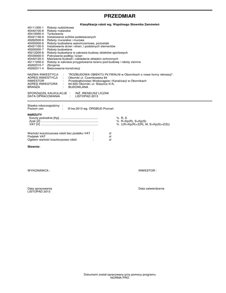 Norma PRO Wersja 4.41a Nr seryjny: 8128 Użytkownik: Ireneusz i Marcin Liczak