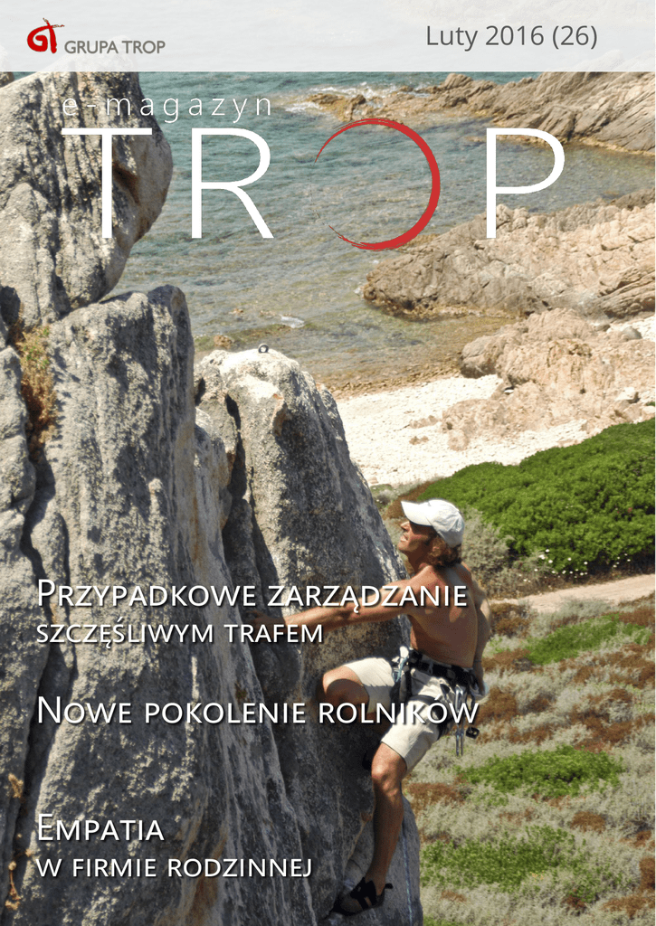 Luty 2016 (26) Przypadkowe zarządzanie szczęśliwym trafem Nowe pokolenie rolników Empatia w firmie rodzinnej TROPletter 2/2016 (26) 1 www.grupatrop.pl Widoki za oknem nie przypominają już raczej zimy, ale rzut oka na kalendarz przypomina nam jednoznacznie, że na wiosnę jeszcze za wcześnie. Obserwowanie przyrody daje wspaniałą okazję pogodzenia się ze starym powiedzeniem „tempus fugit, aeternitas manet – czas ucieka, wieczność pozostaje”. Zmiany, z którymi stykamy się na co dzień dają nam do myślenia. Pozostając w tym nieco melancholijnym nastroju przednówka, zapraszamy was do lektury najnowszego numeru naszego magazynu. Na kolejnych stronach znajdziecie nie tylko opis tego, czym aktualnie się pasjonujemy w TROPie, ale także kilka sprawdzonych sposobów na to, jak radzić sobie z wiosennym stresem. Postaramy się również wyjaśnić Wam czym jest modny ostatnio termin „serendipity”. Zapraszamy do lektury. Zespół e-magazynu TROP SONIA JAKUBOWSKA Trener, konsultant w dziale Zmiana i Rozwój: TROP dla Firm MAGDALENA PRZYBOREK Koordynator Akademii TROP MACIEK TRAWKA Specjalista ds. IT, programista strony internetowej, redaktor i edytor materiałów TROP JUSTYNA ZACHARUK Trener, coach, konsultant w dziale Zmiana i Rozwój: TROP dla Firm SZYMON NIEMIEC Koordynator Ośrodka TROP MACIEJ SANDOMIERSKI Koordynator ds marketingu i sprzedaży PAULINA WÓJCIK Koordynator ds. marketingu i promocji Zapraszamy do kontaktu i współpracy przy tworzeniu TROPlettera. Napisz do nas: [email protected] www.grupatrop.pl PRZYPADKOWE ZARZĄDZANIE SZCZĘŚLIWYM TRAFEM Jac Jakubowski Wywiad z Jackiem (Jacem) Jakubowskim o zjawisku serendipity, wywołany rozmową z drem Ryszardem Praszkierem „Chaos daje im zysk. Kto jest za to odpowiedzialny?” opublikowanym w poprzednim numerze e-magazynu TROP (kliknij aby pobrać). Według dra Ryszarda Praszkiera TROP potrafi „zarządzać serendipity”, a żeby było ciekawiej serendipity, to zdolność dokonywania szczęśliwych odkryć przez przypadek. przypadku TROP i osoba, która zwołuje spotkanie, czyli ja, ważne jest też odpowiednie dobranie uczestników. Jaki klucz stosować przy zapraszaniu ludzi na spotkania w stylu serendipity? Jak zarządzać czymś przypadkowym? W jaki sposób to robimy? Gdzie jest serendipity w Metodzie TROP? Jak uruchamiamy ten efekt? Zapraszam osoby z różnych bajek, ale takie po których nie spodziewam się, że będą agresywne w rozmowie, nie będą oporowały, zakładam, że będą rozumiały podstawowe założenia – np. dlaczego rozmawiamy o emocjach. Powiedziałbym, że warto szukać osób nastawionych na współpracę opartą na empatii. Osób, które są uważne na relacje i gotowe słuchać innych. Jac Jakubowski: Jak się przyglądam nazwie serendipity, to prawie każdy nasz warsztat taki jest. Na warsztatach trenerzy uruchamiają proces grupowy z pewną dozą niewiadomej, wnoszą ją klienci. Najlepiej specyfikę serendipity można pokazać na przykładzie spotkań Instytutu TROP – ich bazą jest idea przewodnia, w tym TROPletter 2/2016 (26) 4 www.grupatrop.pl Jaka jest technologia takich spotkań? Ludzie często wychodząc z takich spotkań mówią, że coś ważnego zobaczyli, zrozumieli i jeśli będą dalej robić coś wokół tej inspiracji, wprowadzać ją w życie, to mogą z tego wyjść innowacyjne projekty. Na początku ja lub ktoś inny stara się przedstawić w inspirujący sposób temat przewodni a później tworzymy warunki do rozmowy, w których ludzie słuchają siebie nawzajem i jednocześnie zwalniamy ich z mówienia w tonie dyskursywnym. Nie muszą niczego udowadniać, być logiczni, a za to mogą przyglądać się temu, co przychodzi im do głowy, snuć rozmaite pomysły, opowiadać o skojarzeniach z tematem, emocjach jakie odczuwają. I nie wiemy, co z tego wyjdzie. Mam wrażenie, że Konwersatorium Zarządzanie Jakością prof. Andrzeja Blikle, które wspólnie poprowadziliśmy po hasłem „Szok nowego – jak pracować z emocjami, aby przeprowadzić ludzi przez pierwszy etap zmiany” miało taki charakter. W serendipity według TROP ważnym elementem jest wspólnota wartości, na konwersatorium były osoby skupione wokół zarządzania jakością i prof. Andrzeja Blikle. Ci ludzie przychodzą na spotkanie z własnej woli, chcą usłyszeć, dowiedzieć się czegoś ciekawego, zrozumieć coś na temat jakości. inspirowana przez prowadzącego, odpowiedni czas na bliskość emocjonalną w grupie, a moderatorzy dbają o poczucie bezpieczeństwa. Taki moderator swoim uśmiechem, sposobem bycia, moderacji modeluje uważność i dba, o to, aby każdy uczestnik zabrał głos. Nie trzeba się przepychać, walczyć o głos. Moderator tworzy pewien porządek na zasadzie „rundki” albo przydziela głos, panuje nad procesem grupowym, ale nie nad osobami. Każdy człowiek ma swój proces myślowy, coś przeżywa i ma do tego prawo, ale wspólnie w grupie uczestnicy komunikują się w rytm jasnych zasad komunikacji wyznaczonych przez moderatora. Podobną sytuację stworzyliśmy podczas Festivalu TROP – Smakuj Rozwój, gdzie zrobiliśmy open space – zaprosiliśmy różne ciekawe osoby, które prowadziły gniazda tematyczne. Uczestnicy mogli wybrać to gniazdo, które najbardziej ich ciekawiło, mieli wolny wybór co do tego, czy zostaną i będą rozmawiać dalej, czy też zmienią temat i przeniosą się do innego gniazda. Optymalne serendipity według TROP to takie, gdzie oprócz prowadzącego są też moderatorzy, czyli duża grupa (50-100 osób) za- TROPletter 2/2016 (26) 5 www.grupatrop.pl Serendipity w Metodzie TROP dotyczy pracy w większej grupie – konferencji, antykonferencji i open space, uruchamiamy tam proces społeczny, w mniejszej prowadzimy warsztat i inicjujemy proces grupowy. gotowanie osobiste do uruchamiania procesów. A później ten „przypadek” ten wynik, nie jest tak naprawdę przypadkiem, jego kształt jest przypadkiem, bo nie wiemy co będzie.