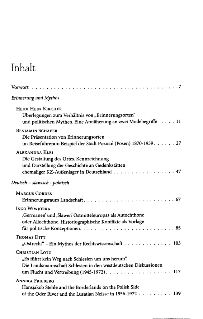 Inhalt Vorwort 7 Erinnerung und Mythos HEIDI HEIN-KIRCHER Oberlegungen zum Verhaltnis von ,,Erinnerungsorten" und politischen Mythen. Eine Annaherung an zwei Modebegriffe . . . . 11 BENJAMIN SCHAFER Die Presentation von Erinnerungsorten im Reisefiihreram Beispiel der Stadt Poznah (Posen) 1870-1939 27 ALEXANDRA KLEI Die Gestaltung des Ortes. Kennzeichnung und Darstellung der Geschichte an Gedenkstatten ehemaliger KZ-Aufienlager in Deutschland 47 Deutsch - slawisch - polnisch MARCUS CORDES Erinnerungsraum Landschaft 67 INGO WIWJORRA .Germanen und .Slawen Ostmitteleuropas als Autochthone oder Allochthone. Historiographische Konflikte als Vorlage fiir politische Konzeptionen 85 THOMAS DITT ..Ostrecht" - Ein Mythos der Rechtswissenschaft 103 CHRISTIAN LOTZ ,,Es fuhrt kein Weg nach Schlesien um uns herum". Die Landsmannschaft Schlesien in den westdeutschen Diskussionen umFlucht und Vertreibung (1945-1972) 117 ANNIKA FRIEBERG Hansjakob Stehle and the Borderlands on the Polish Side of the Oder River and the Lusatian Neisse in 1956-1972 139 6 Inhalt NICOLA HILLE Willy Brandts Kniefall: Die politische Bedeutung, emotionale Wirkung und mediale Rezeption einer symbolischen Geste 163 Schlesisches IZABELA DROZDOWSKA Dolny Slqsk w powiesciach Olgi Tokarczuk. Proba dialogu? 185 DAGMARA MARGIELA Breslau, Lwow, krasnoludki... Wspolczesne uzycie historii Dolnego Slqska w mediach na przykladzie Gazety Wyborczej 195 ANDRZEJ MICHALCZYK Polsko-niemiecka walka narodowosciowa na Gornym Slqsku. Mit historiograficzny a kwestia tozsamosci gornoskjskiej 217 Stereotypen HANS HENNING HAHN Stereotyp - Geschichte - Mythos. Oberlegungen zur historischen Stereotypenforschung 237 ANNA KOCHANOWSKA-NIEBORAK Stereotypy a procesy narodowotworcze. Przyklad niemieckiego obrazu Polski w dziewietnastowiecznych wydaniach Leksykonu Konwersacyjnego Meyera 257 JAROSIAW SUCHOPLES Klopot z pozytywnym stereotypem, czyli o doswiadczeniach wtasnych badacza historii stosunkow mi^dzynarodowych 269 Ober die Autoren 283 OAutorach 289