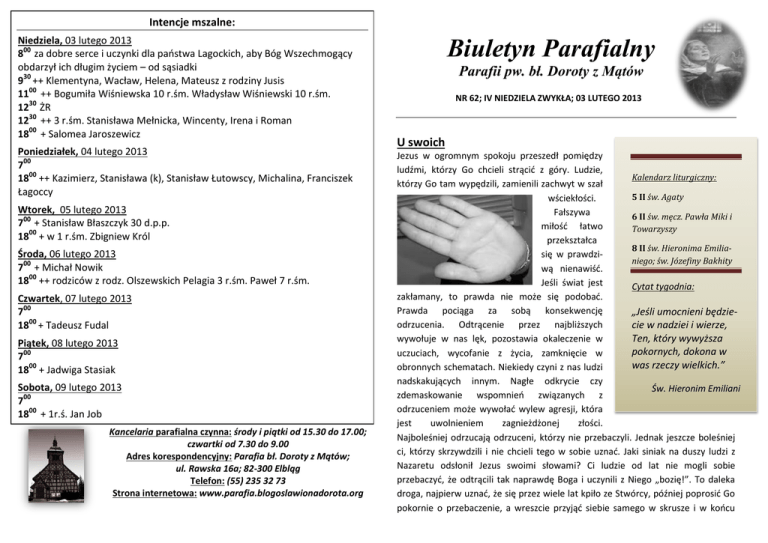 BIULETYN nr 62 - Parafia Błogosławionej Doroty z Mątów w Elblągu