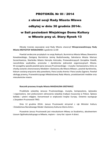 PROTOKÓŁ Nr III / 2014 z obrad sesji Rady Miasta Mława odbytej w