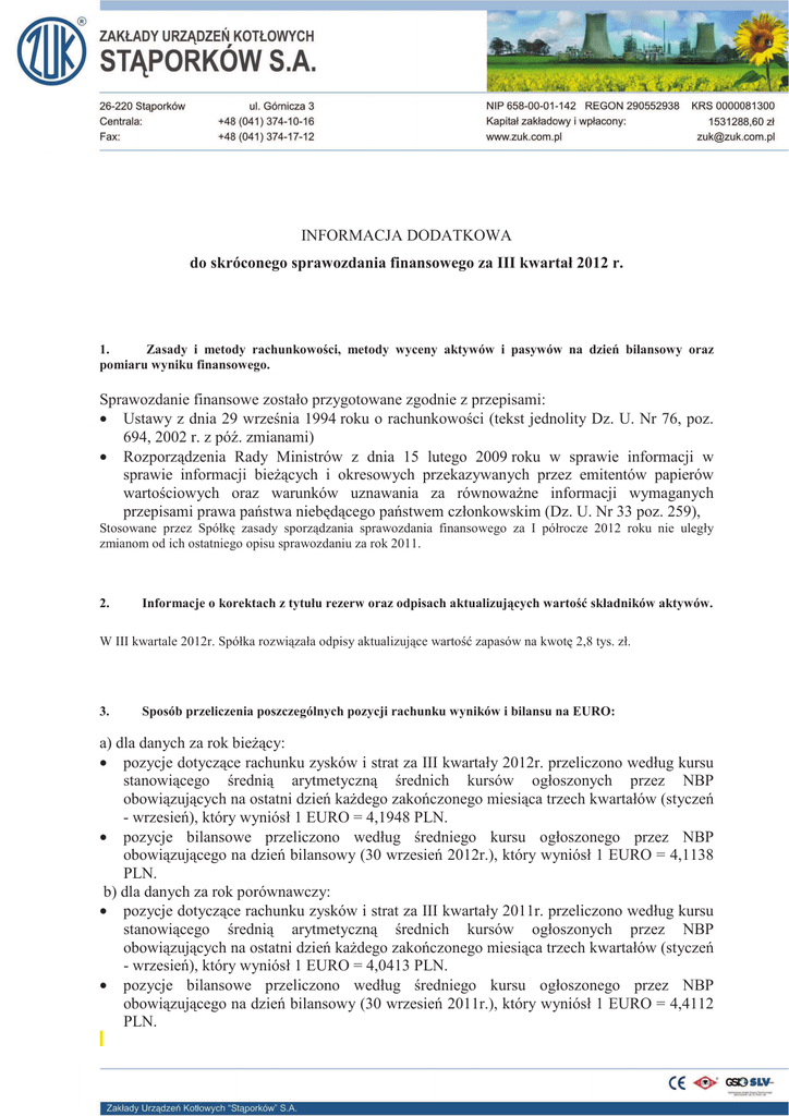 Informacja dodatkowa 3 kw 2012 - Zakłady Urządzeń Kotłowych