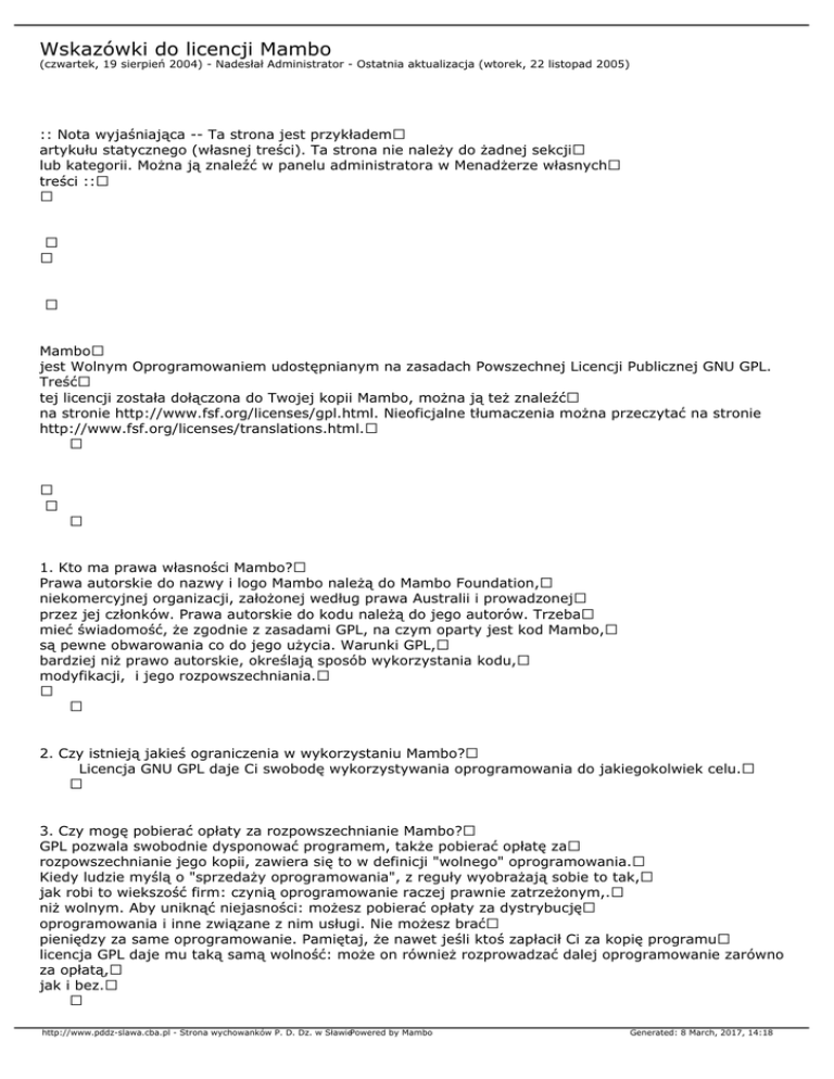 Wskazówki do licencji Mambo - Strona wychowanków PD Dz. w