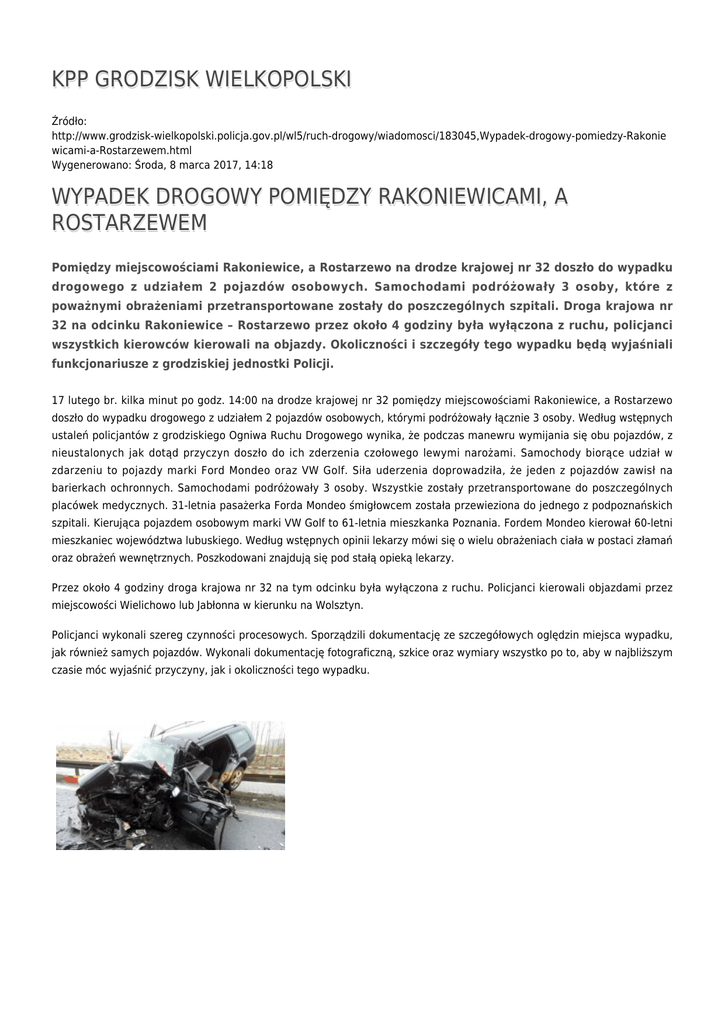KPP GRODZISK WIELKOPOLSKI WYPADEK DROGOWY