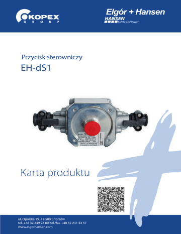 Przycisk sterowniczy EH-dS1 Karta produktu ul. Opolska 19, 41-500 Chorzów tel. +48 32 249 94 80, tel./fax +48 32 241 34 57 www.elgorhansen.com CECHY CHARAKTERYSTYCZNE Przycisk sterowniczy typu EH-dS1 jest elektrycznym urządzeniem górniczym. Przeznaczony jest do załączania i/lub wyłączania obwodów elektrycznych. Konstrukcja opracowana została zgodnie z wymaganiami dyrektywy 94/9/WE (ATEX). Certyfikat zgodności predestynuje stosowanie przycisku sterowniczego w pomieszczeniach z atmosferą wybuchową grupy I kategorii M2 (patrz DZ.U. nr 143, poz. 1393, 2003 r.). Budowa przeciwwybuchowa umożliwia stosowanie przycisku w pomieszczeniach z atmosferą wybuchową. Wszelkie części mogące wywołać zapłon mieszaniny wybuchowej umieszczone są w osłonie wytrzymującej bez uszkodzeń i trwałych odkształceń ciśnienie wybuchu oraz zapobiegającej skutecznie przeniesieniu się wybuchu z wnętrza osłony do wyrobiska. Możliwość stosowania przycisku w pomieszczeniach z atmosferą wybuchową została, wraz z cechami charakterystycznymi, podana na tabliczce znamionowej umieszczonej na osłonie zewnętrznej. BUDOWA Przycisk sterowniczy składa się z korpusu, wyposażonego w zespoły wpustowe oraz z pokrywy, na której znajduje się zewnętrzny ryglowany napęd ręczny łącznika (odryglowanie przez wyciągnięcie). W zależności od zastosowanego rodzaju zestyków, łącznik ŁPO oznaczony jest następującym typem: • Ł PO/R: z jednym zestykiem NO i jednym zestykiem NC, • Ł PO/01: z jednym zestykiem NO i jednym zestykiem NC, • Ł PO/02: z dwoma zestykami NC, • ŁPO/03: z dwoma zestykami NO, • Ł PO/04: z jednym zestykiem NO i torem przelotowym, • Ł PO/05: z jednym zestykiem NC i torem przelotowym. OPIS DZIAŁANIA Przycisk sterowniczy służy do załączania i/lub wyłączania obwodów elektrycznych. Jako przykład opisany zostanie przycisk z łącznikiem ŁPO/R (patrz poniżej schemat przycisku sterowniczego). Przycisk ten wyposażony jest w dwa zestyki: NO (normalnie otwarty 13-14) i NC (normalnie zamknięty 23-24). Po naciśnięciu napędu, następuje załączenie toru 13-14 i odłączenie 23-24, aż do momentu odryglowania napędu poprzez wyciągnięcie. CECHA BUDOWY PRZECIWWYBUCHOWEJ I M2 Ex d I 1453 Certyfikat badania typu WE: KDB 05ATEX087X SCHEMAT PRZYCISKU STEROWNICZEGO ŁPO/RŁPO www.elgorhansen.com Przycisk sterowniczy EH-dS1 DANE TECHNICZNE Typ EH-dS1 Napięcie znamionowe izolacji 250V Napięcie znamionowe łączeniowe 220V Znamionowy prąd ciągły - 6A Znamionowy prąd łączeniowy 4 A(AC); cosφ=0,95; 50Hz -1,6 A(DC); L/R=1ms Znamionowa częstotliwość łączeń -120 ł/h Trwałość mechaniczna -106 cykli Kategoria użytkowania AC-21A - DC-21A Maksymalny przekrój przyłączanych przewodów Temperatura otoczenia -2,5 mm2 od -20 do +40 °C Wilgotność względna w temperaturze 35 °C - 95% Wymiary (bez zespołu wpustowego) 126/124/1541 mm (szer./wys./gł.) Masa ~ 6,5kg DANE TECHNICZNE URZĄDZENIA Z ŁĄCZNIKIEM TYPU ŁPO/01±05 Typ EH-dS1 Napięcie znamionowe izolacji 500V Napięcie znamionowe łączeniowe 500V Znamionowy prąd ciągły 6A Znamionowy prąd łączeniowy 2,5 A(AC); cosφ=0,95; 50Hz Znamionowa częstotliwość łączeń 120 ł/h Trwałość mechaniczna 106 cykli Kategoria użytkowania AC-21A Maksymalny przekrój przyłączanych przewodów -2,5mm2 Temperatura otoczenia Wilgotność względna w temperaturze Wymiary (bez zespołu wpustowego) Masa od -20 do +40 °C 35 °C - 95% ~126/124/1542 mm (szer./wys./gł.) ~ 6,5kg ul. Opolska 19, 41-500 Chorzów tel. +48 32 249 94 80, tel./fax +48 32 241 34 57 www.elgorhansen.com Przycisk sterowniczy EH-dS1 RYSUNEK WYMIAROWY ul. Grabowa 1, 40-172 Katowice tel. +48 32 604 70 00, tel./fax +48 32 604 71 00 www.kopex.com.pl