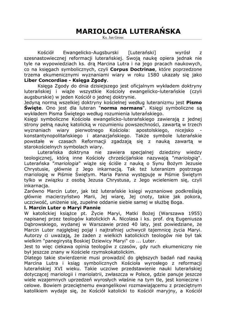 1997 - Ks. Jan Gross: Mariologia luterańska w księgach symbolicznych oraz w życiu i nauce