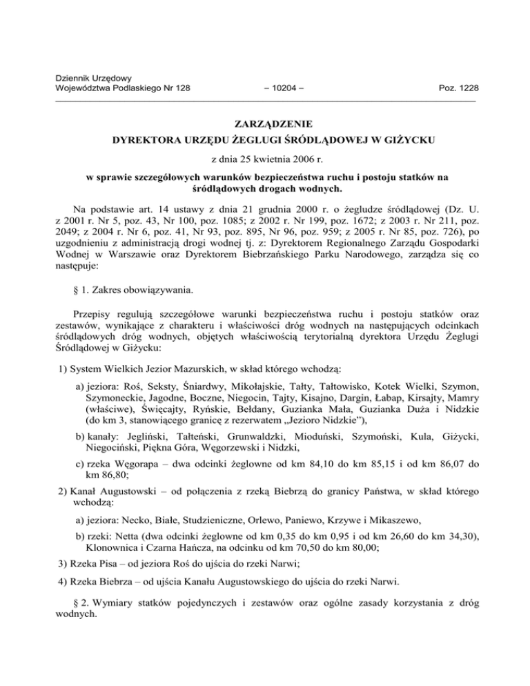 Zarządzenie Dyrektora Urzędu Żeglugi Śródlądowej w Giżycku 290 kB