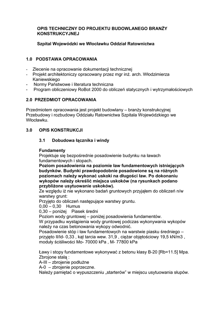 Opis konstrukcja - Wojewódzki Szpital Specjalistyczny we Włocławku