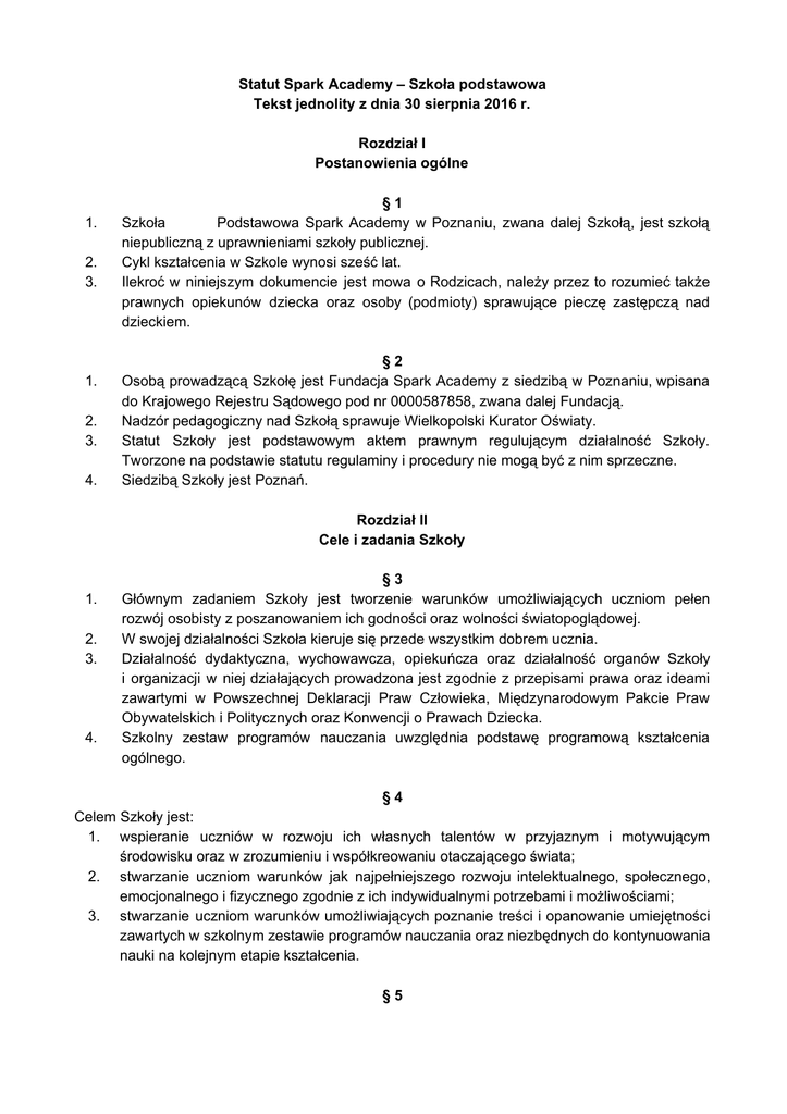 Statut Spark Academy – Szkoła podstawowa Tekst jednolity z dnia
