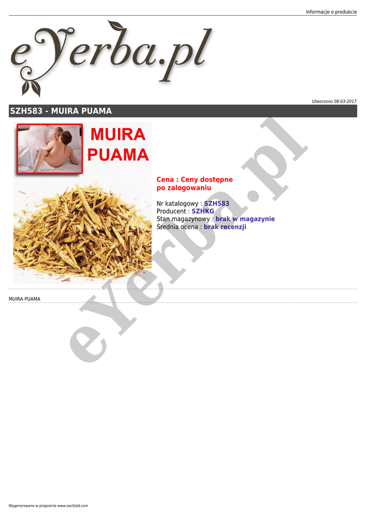 Informacje o produkcie Utworzono 08-03-2017 a. pl SZH583 - MUIRA PUAMA Cena : Ceny dostępne po zalogowaniu eY MUIRA PUAMA er b Nr katalogowy : SZH583 Producent : SZHKG Stan magazynowy : brak w magazynie Średnia ocena : brak recenzji Wygenerowano w programie www.oscGold.com