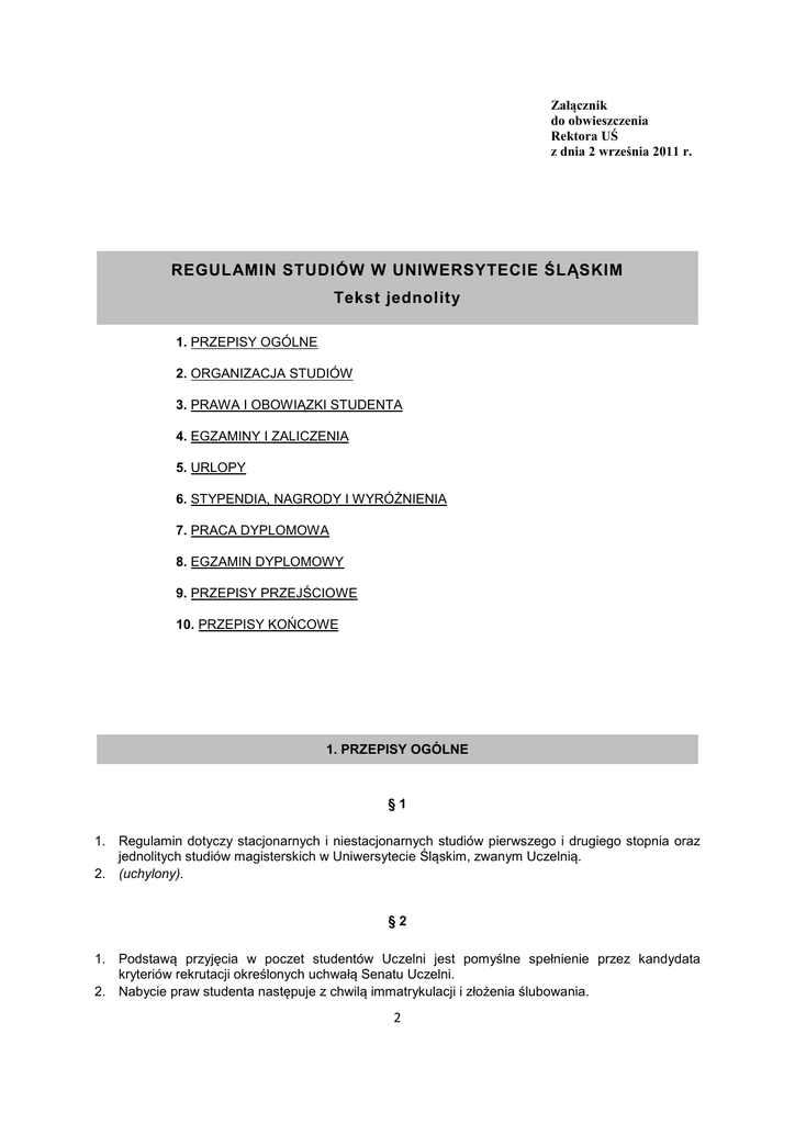 REGULAMIN STUDIÓW W UNIWERSYTECIE ŚLĄSKIM Tekst