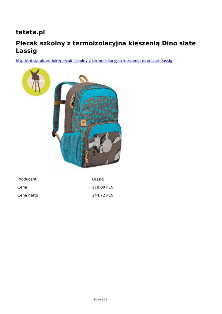 tatata.pl Plecak szkolny z termoizolacyjna kieszenią Dino slate Lassig http://tatata.pl/produkt/plecak-szkolny-z-termoizolacyjna-kieszenia-dino-slate-lassig Producent Lassig Cena 178.00 PLN Cena netto 144.72 PLN Strona 1 z 1