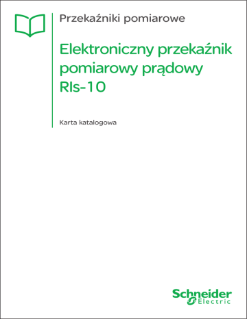 Przekaźniki pomiarowe Elektroniczny przekaźnik pomiarowy prądowy RIs-10 Karta katalogowa Przekaźniki pomiarowe Elektroniczny przekaźnik pomiarowy prądowy RIs-10 Właściwości w Jednofunkcyjny, jednofazowy; działanie bezzwłoczne w Przekaźnik wykonawczy z dwoma zestykami przełącznymi w Jednozakresowy; jeden z trzech zakresów prądu przemiennego (od 1 A do 15 A) w Galwaniczna separacja obwodu pomiarowego w Dioda LED sygnalizująca obecność napięcia zasilania (Un) w Dioda LED sygnalizująca stan przekaźnika wyjściowego (R) w Montaż na szynie 35mm Schemat wyprowadzeń Wymiary przekaźnika: RIs-10 Sposób zamawiania: typ przekaźnika Przykład: RIs-10 zakres 2 - 10 A Dane Techniczne w Zakresy prądu pomiarowego (opcje): 1-5; 2-10; 3-15A AC w Częstotliwość: 50Hz w Obciążenie trwałe obwodu wejściowego: 20A w Pomocnicze napięcie zasilania Un: 220V AC w Dopuszczalne zmiany napięcia zasilania: (0,8-1,1)Un w Współczynnik powrotu: ≥ 0,95 w Czas regeneracji: ≤ 0,06s w Zdolność łączeniowa: - załączanie i trwale 5A - wyłączanie 5A (220V AC, cos ϕ ≥ 0,4) 0,1A (220V DC, L/R=40ms) w Trwałość łączeniowa: 105 w Dokładność nastawy: ± 5 % w Rozrzut: 1% w Temperatura pracy: (-10...+55)°C Schneider Electric Energy Poland Sp. z o.o. Zakład Automatyki i Systemów Elektroenergetycznych 58-160 Świebodzice, ul. Strzegomska 23/27 Tel. +48 (74) 854 84 10, Fax +48 (74) 854 86 98 www.schneider-electric.com www.schneider-electric.pl