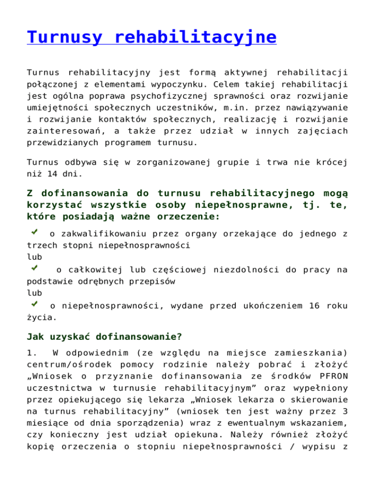 Turnusy rehabilitacyjne