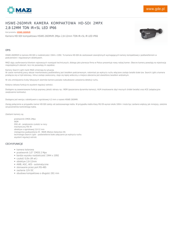 www.gde.pl HSWE-26DMVR KAMERA KOMPAKTOWA HD