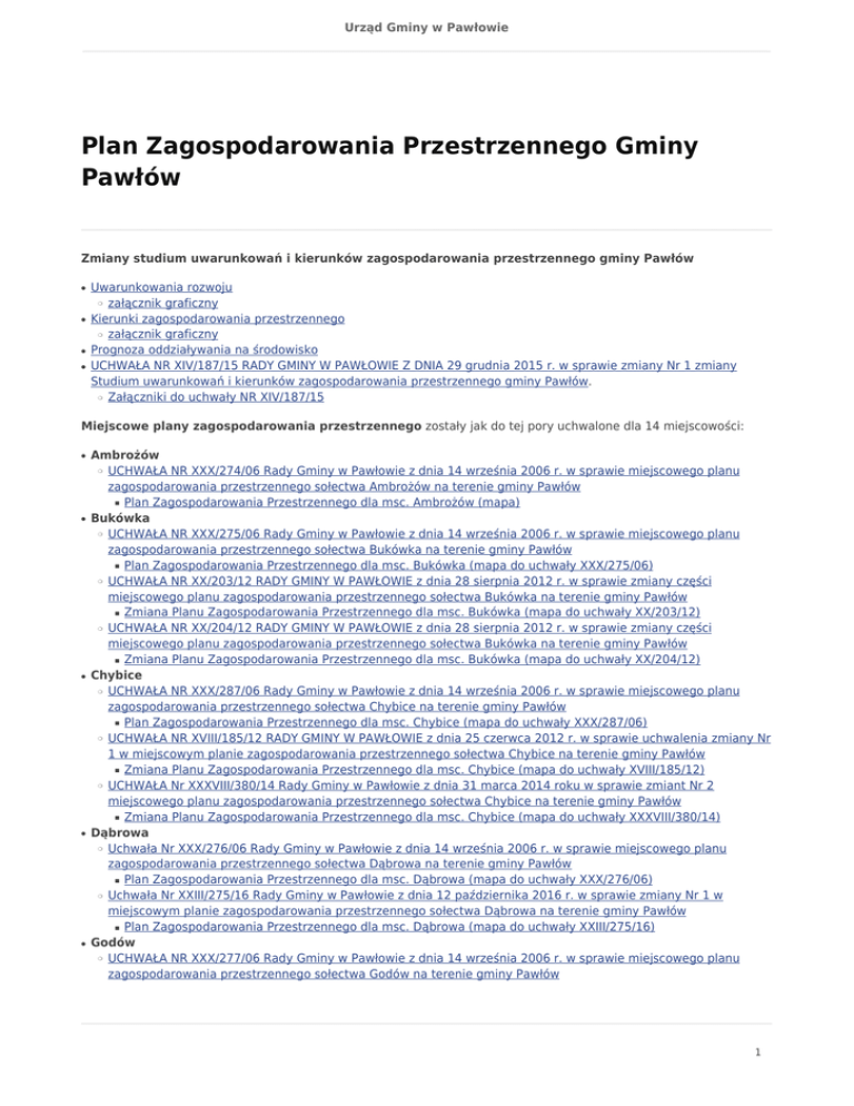Plan Zagospodarowania Przestrzennego Gminy Pawłów