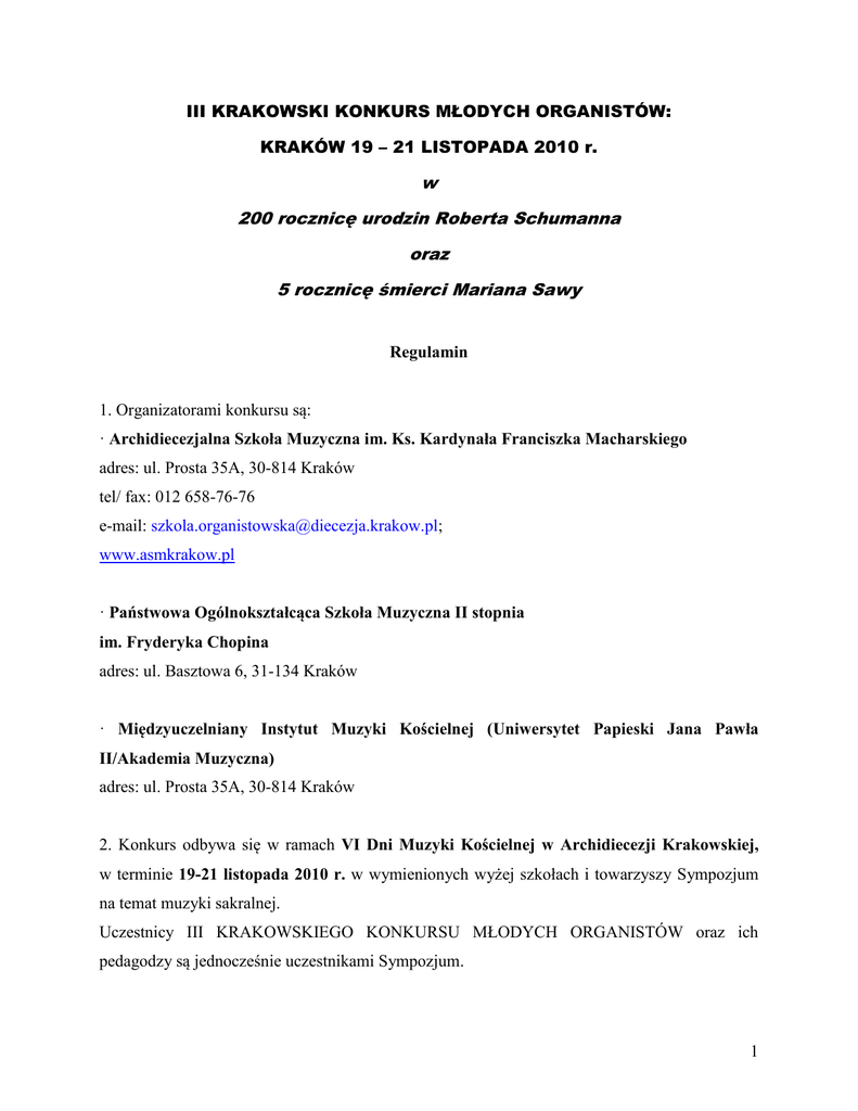 Regulamin konkursu - Archidiecezjalna Szkoła Muzyczna