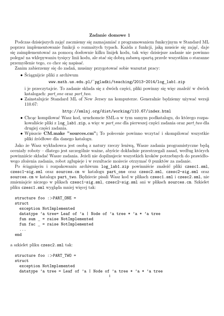 Po ściągnięciu i rozpakowaniu archiwum log lab1.zip powinniście znaleźć pliki czesc1.sml,