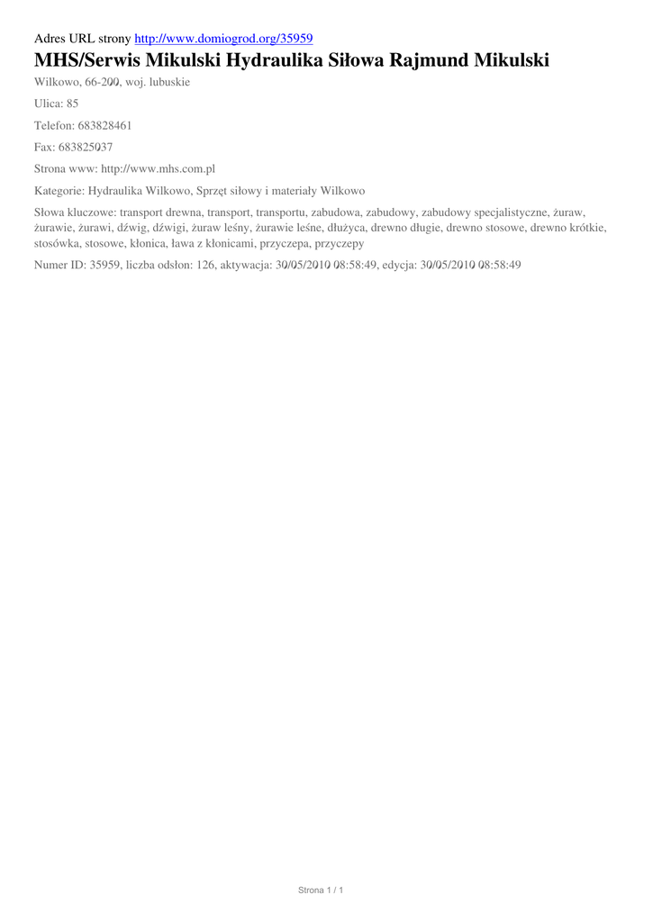 MHS/Serwis Mikulski Hydraulika Silowa Rajmund Mikulski, Wilkowo