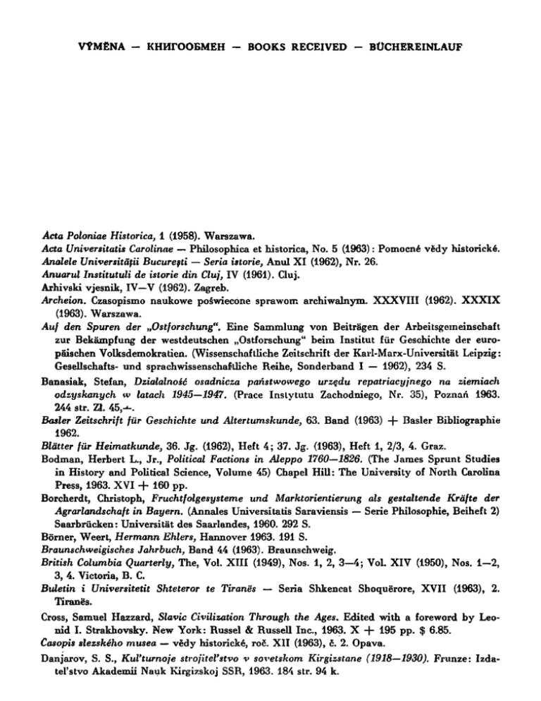 BOOKS RECEIVED - BÜCHEREINLAUF Acta Poloniae Historica, 1