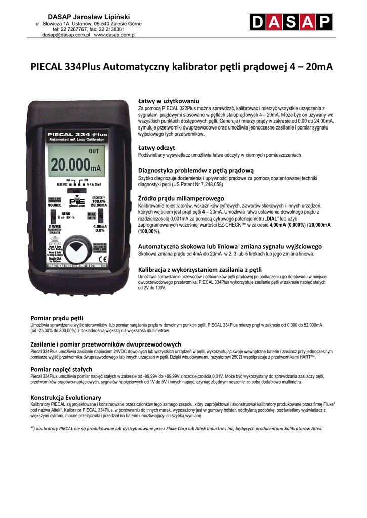 Karta katalogowa kalibratora PIECAL 334Plus ()